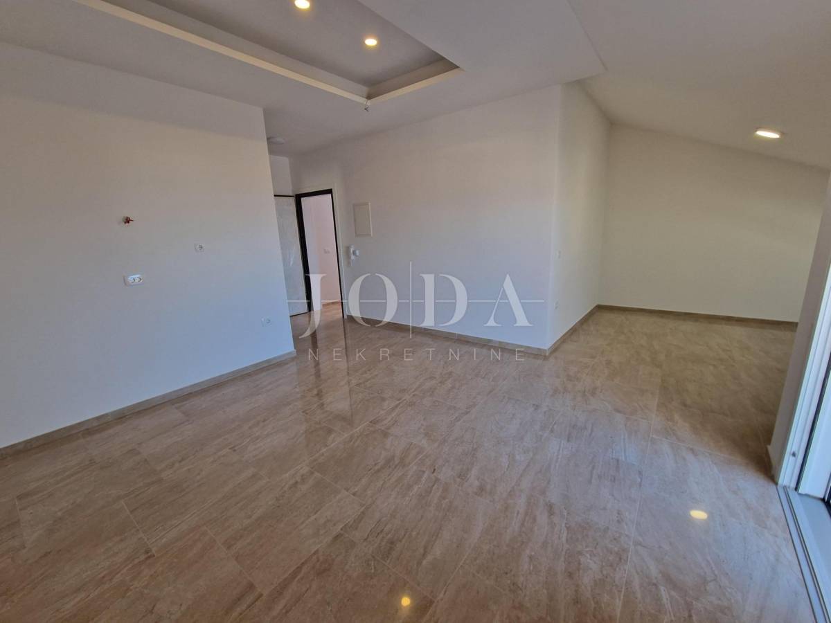 Apartman se nalazi u visokom potkrovlju i površine je 67,72m2. Sastoji se od dnevnog boravka s kuhinjom, hodnika, kupaonice, dvije spavaće sobe te natkrivene terase. Izgrađen je 2022. godine te je novogradnja. U izgradnji su se koristili kvalitetni materijali te ima podno grijanje, PVC stolariju i u potpunosti je klimatiziran. Apartmanu pripada jedno parkirno mjesto. Ima izlaz na prostranu terasu i pogled na more. Nalazi se u mirnom predjelu Njivica, samo 600 metara od mora! Za više informacija i dogovor ogled nekretnina, kontaktirajte nas!