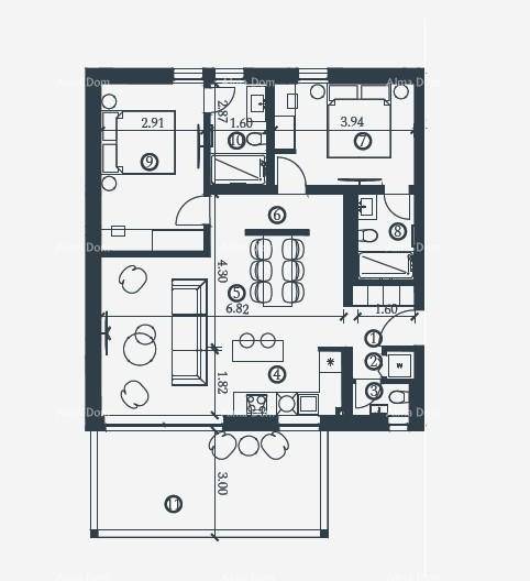 Stan A2-1 površine 74,76 m2 koji se sastoji od ulaznog hodnika, dvije spavaće sobe, dvije kupaonice, kuhinje s blagavaonicom te dnevnim boravkom te velikom terasom od 20 m2.
