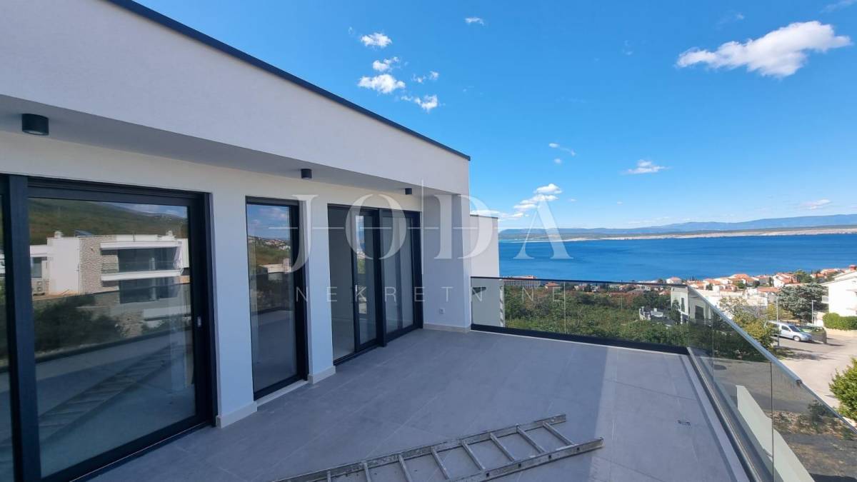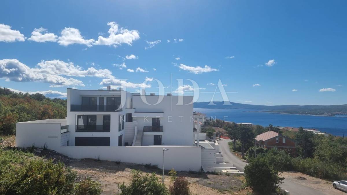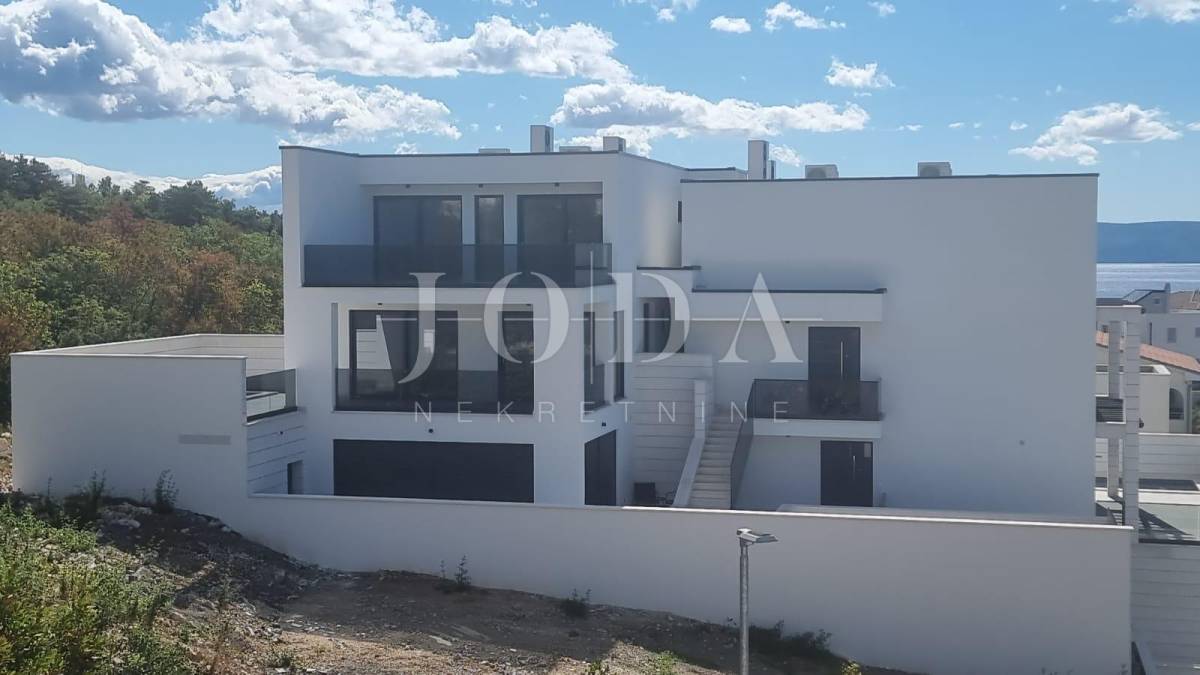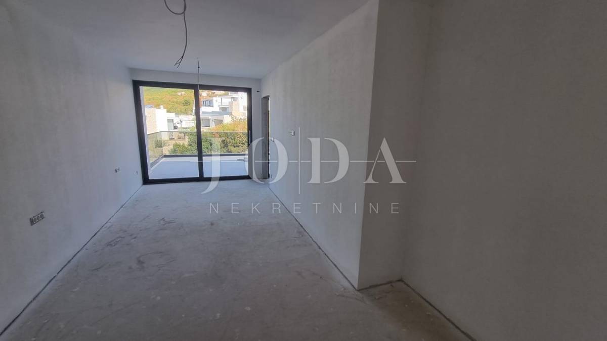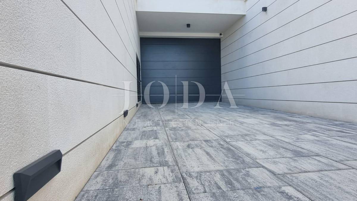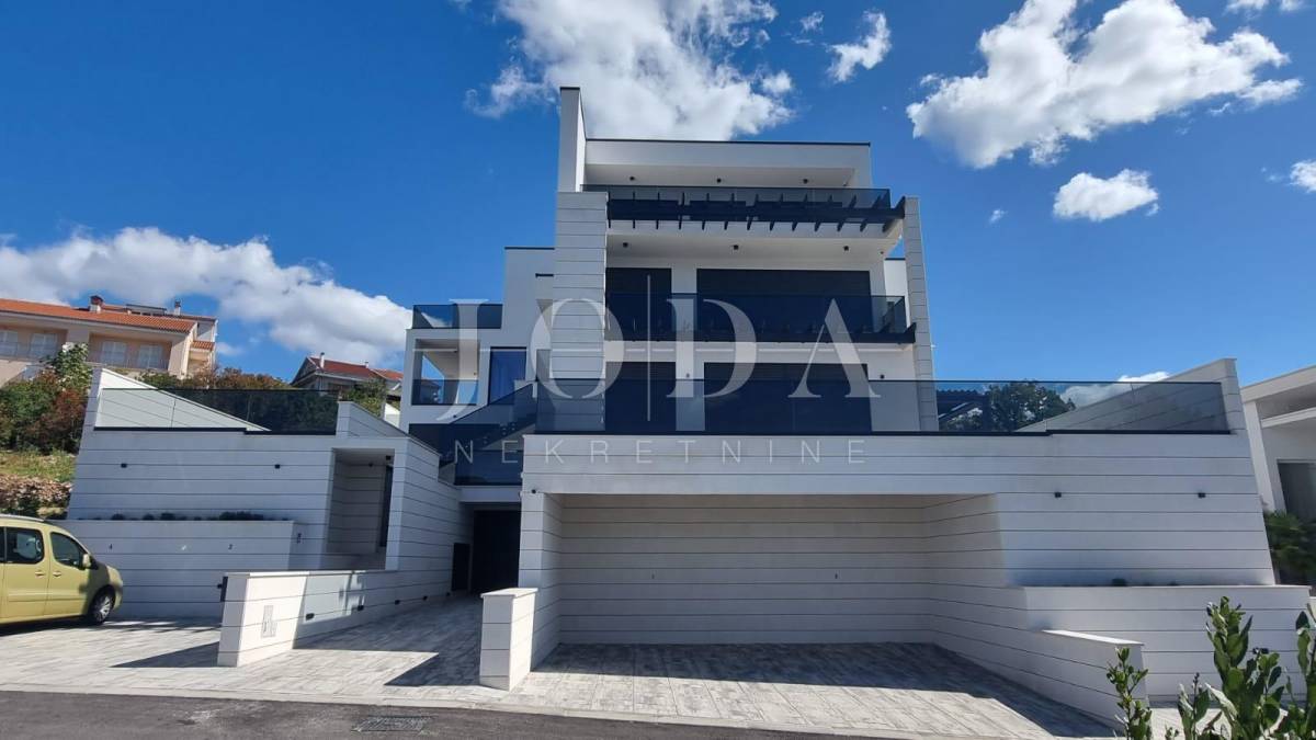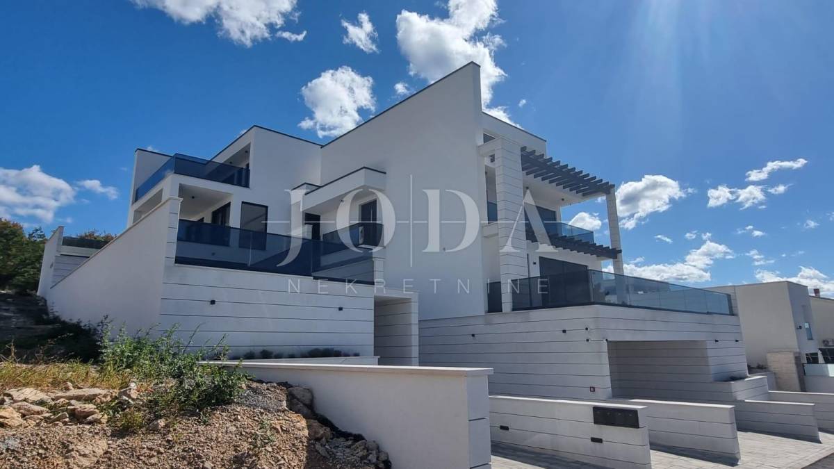 U slobodnostojećoj građevini s ravnim krovom, aluminijskom stolarijom (velikim staklenim stijenama), vrhunskom termoizolacijom, keramikom i drvenim podovima visoke kvalitete u dvoetažni stan površine od oko 100 m2 ulazi se zasebnim ulazom. Potpuna privatnost upotpunjena je privatnim bazenom s dvorištem i vrtom, a prekrasan pogled na more i okolne otoke i planine pruža se sa dvije natkrivene terase. Od centra grada, plaže, restorana i ostalih sadržaja udaljen je oko deset minutaja udaljen je oko deset minuta.