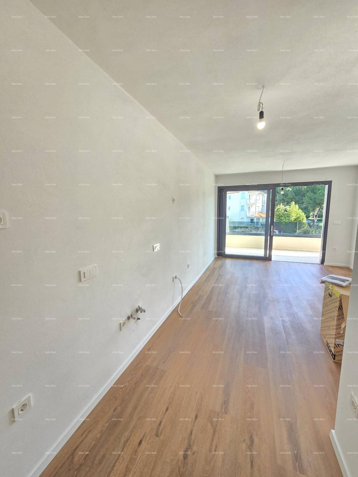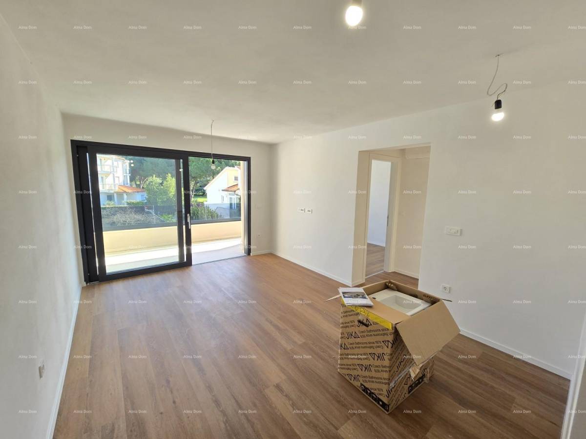 U ponudi je stan na 2. katu novogradnje koji se sastoji od hodnika s garderobom, kupaonice, dvije spavaće sobe, kuhinje s blagavaonicom te dnevnim boravkom i natkrivenom terasom.