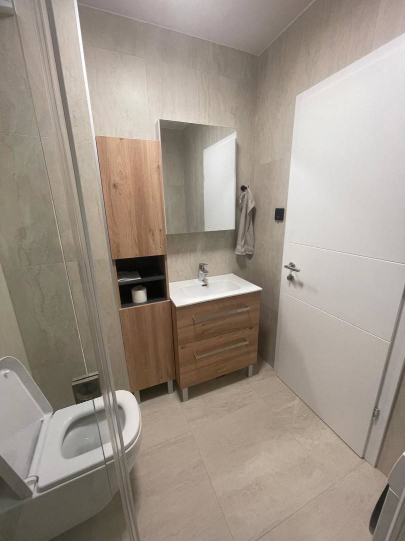 Stan se sastoji od hodnika s garderobom, kuhinje s blagovaonom i dnevnim boravkom s izlazom na natkrivenu terasu, spavaće sobe te kupaonice. Namješten i opremljen, perilica suđa, klima uređaj...