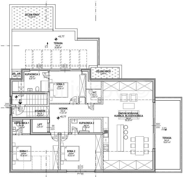 Luksuzni četverosobni penthouse površine 127,39m2 na 3. katu zgrade sagrađene 2024. godine.