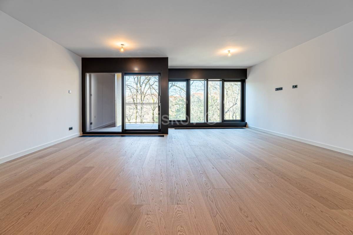 Stan se sastoji od velikog dnevnog boravka integriranog s kuhinjom i blagovaonicom, te izlazom na loggiu, dvije manje spavaće sobe, roditeljske spavaće sobe s kupaonicom i garderobom, dodatne kupaonice i halla.