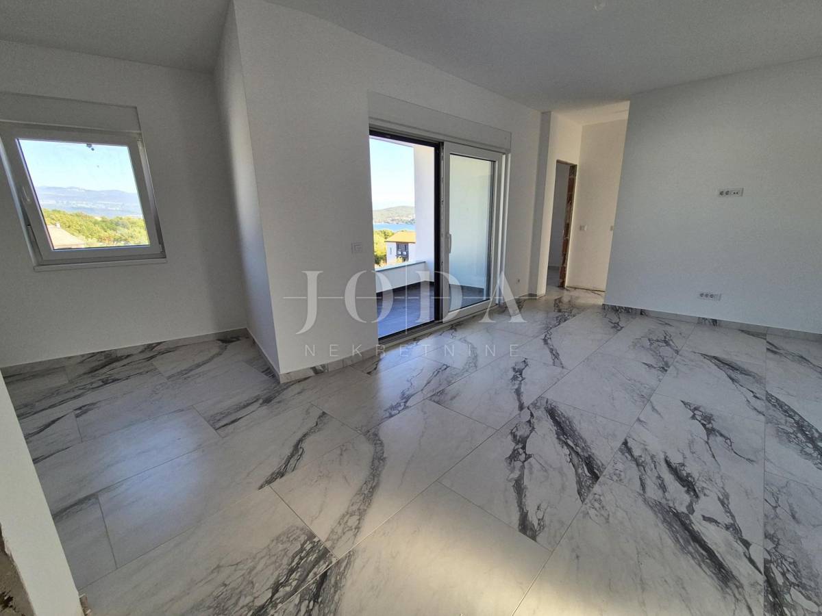 Apartman površine 67,00 m2 sastoji se od tri spavaće sobe, kupaonice, dnevnog boravka, kuhinje, blagovaonice, wc-a i terase s pogledom na more. Ima jedno parkirno mjesto na okućnici.