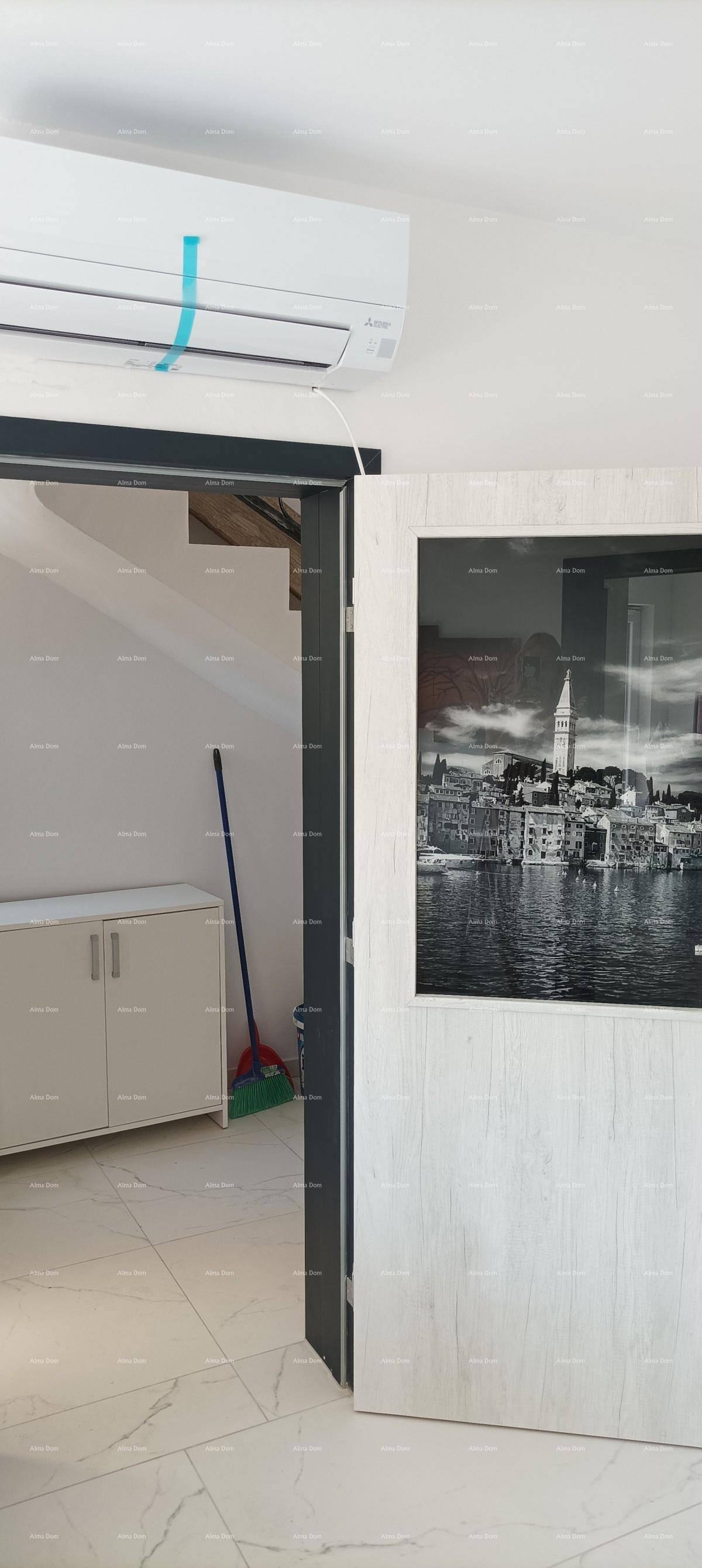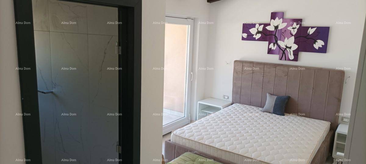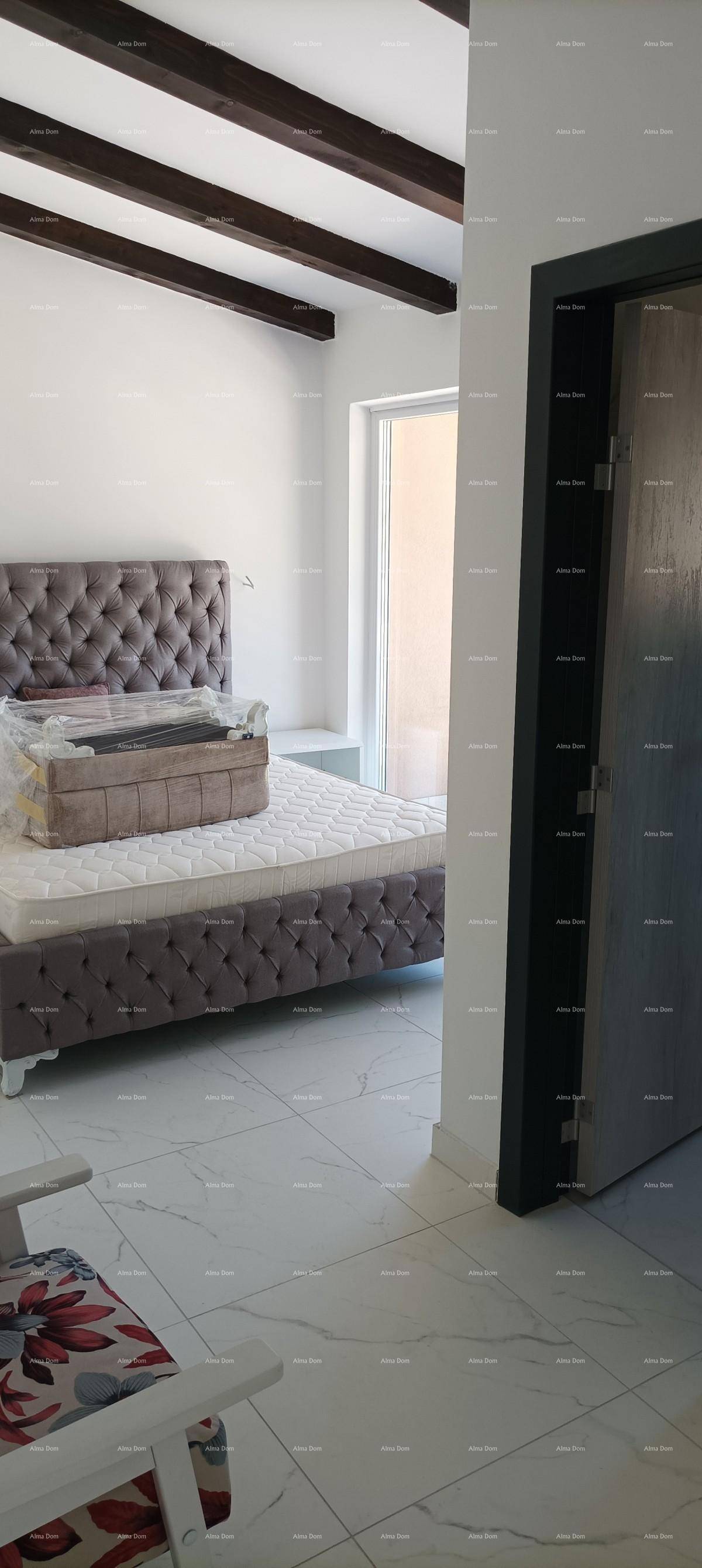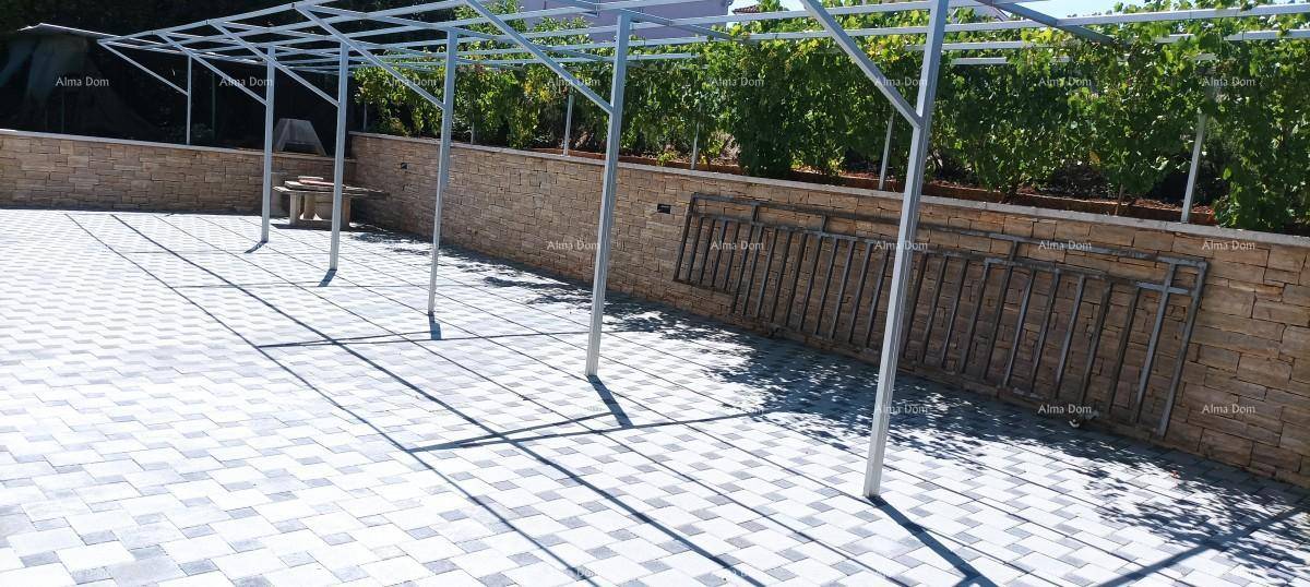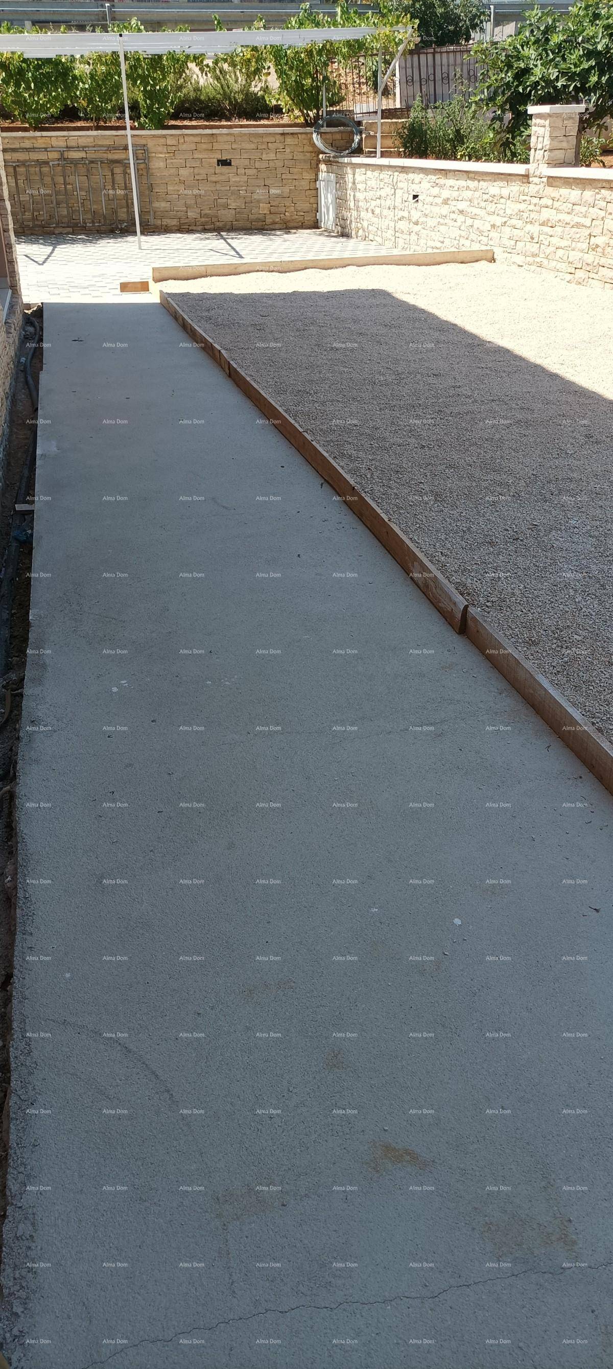 Prodajemo novoizgrađeni apartmanski objekt sa 4 kompletno namještanih apartmana u blizini Rovinja. Zgrada ima 2 ulaza, svaki ulaz ima apartman u prizemlju sa 2 terase, kuhinju i blagovaonu, dnevni boravak i 2 spavaće sobe sa svojim kupaonicama. S glavnog ulaza kroz hodnik po stepenicama se ide na 1 kat u drugi apartman istog rasporeda. U dvorište zgrade se ulaze kroz glavni portun na daljinsko upravljanje i napravljena konstrukcija za natkriljeni parking za 6 vozila unutar dvorišta.