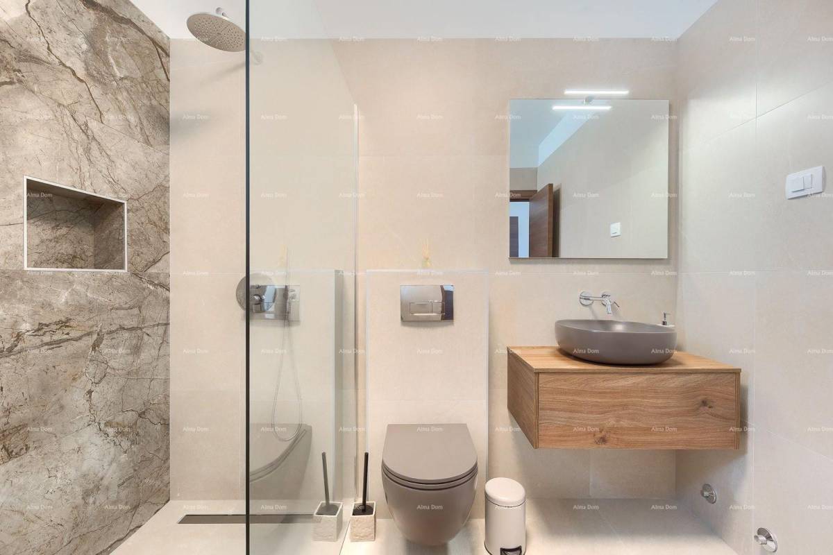 Okolica Svetvinčenta odnosno kuća se nalazi u mjestu okruženo zelenilom i vinogradom . Samo nekoliko kilometra od centra Svetvinčenta smjestila se ova moderna, elegantna vila s prostranom okućnicom veličine 846m2.