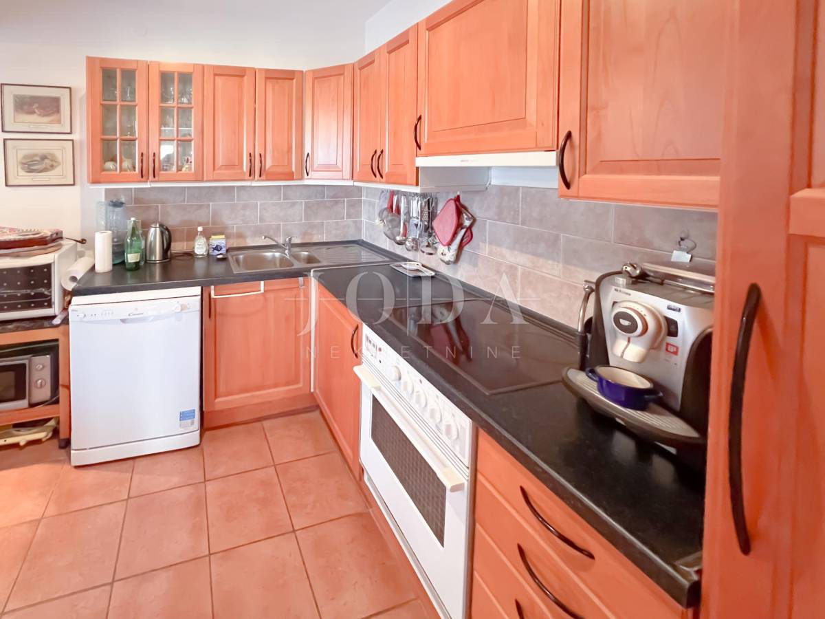 Kompletno donji dio čini veliki otvoreni prostor dnevnog boravka,blagavaonicete kuhinje,uz kupaonicu.zaseban mokri čvor i spremište.