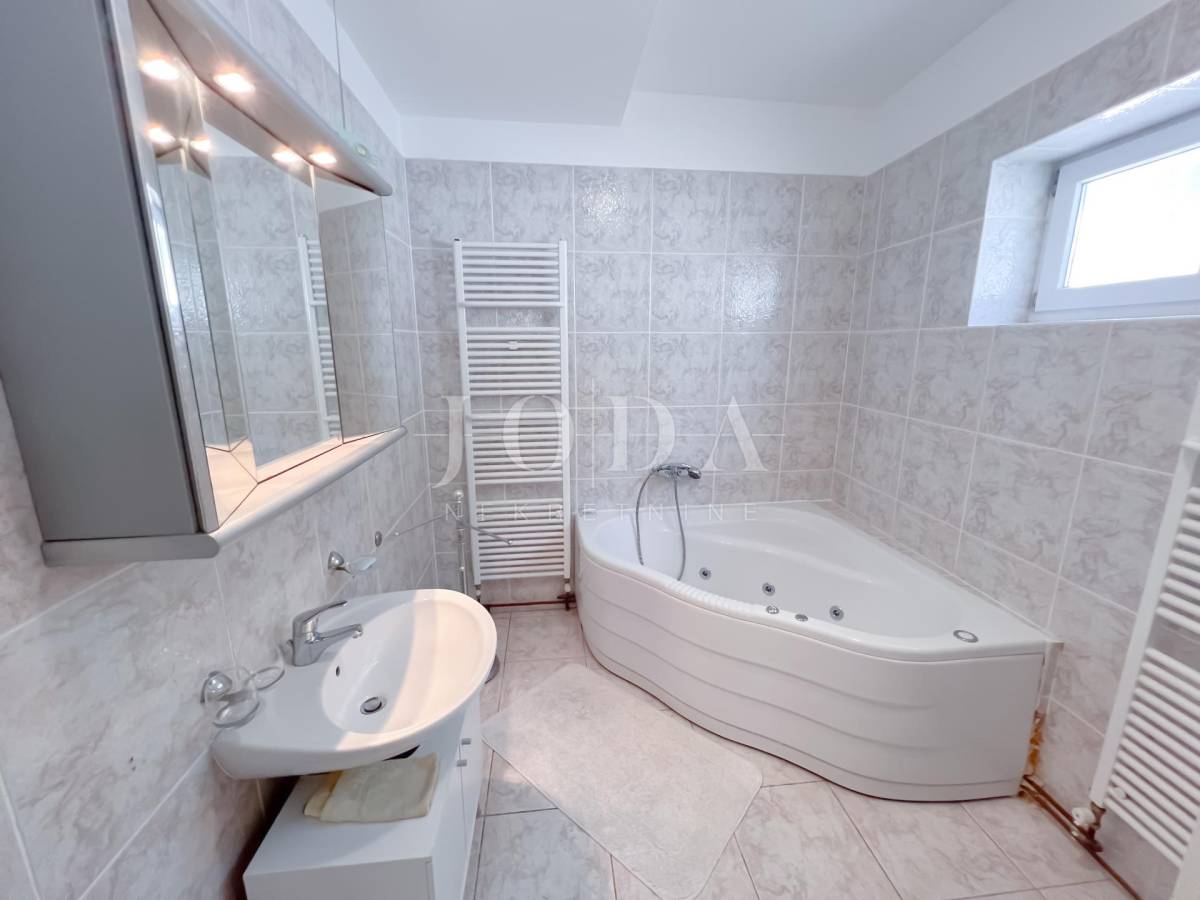 U donjem dijelu okućnice je smještena garaža od 36m2,te jedno parkirno mjesto.Sunčalište i grijani bazen u zapadnom dijelu osigurava sunce tijekom cijelog dana.