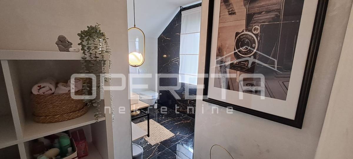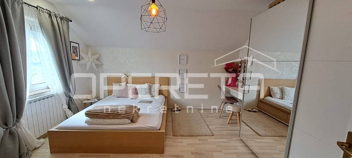 Na katu su tri vrlo prostrane sobe, svaka veća od 20 m², te moderno uređena kupaonica s WC-om.