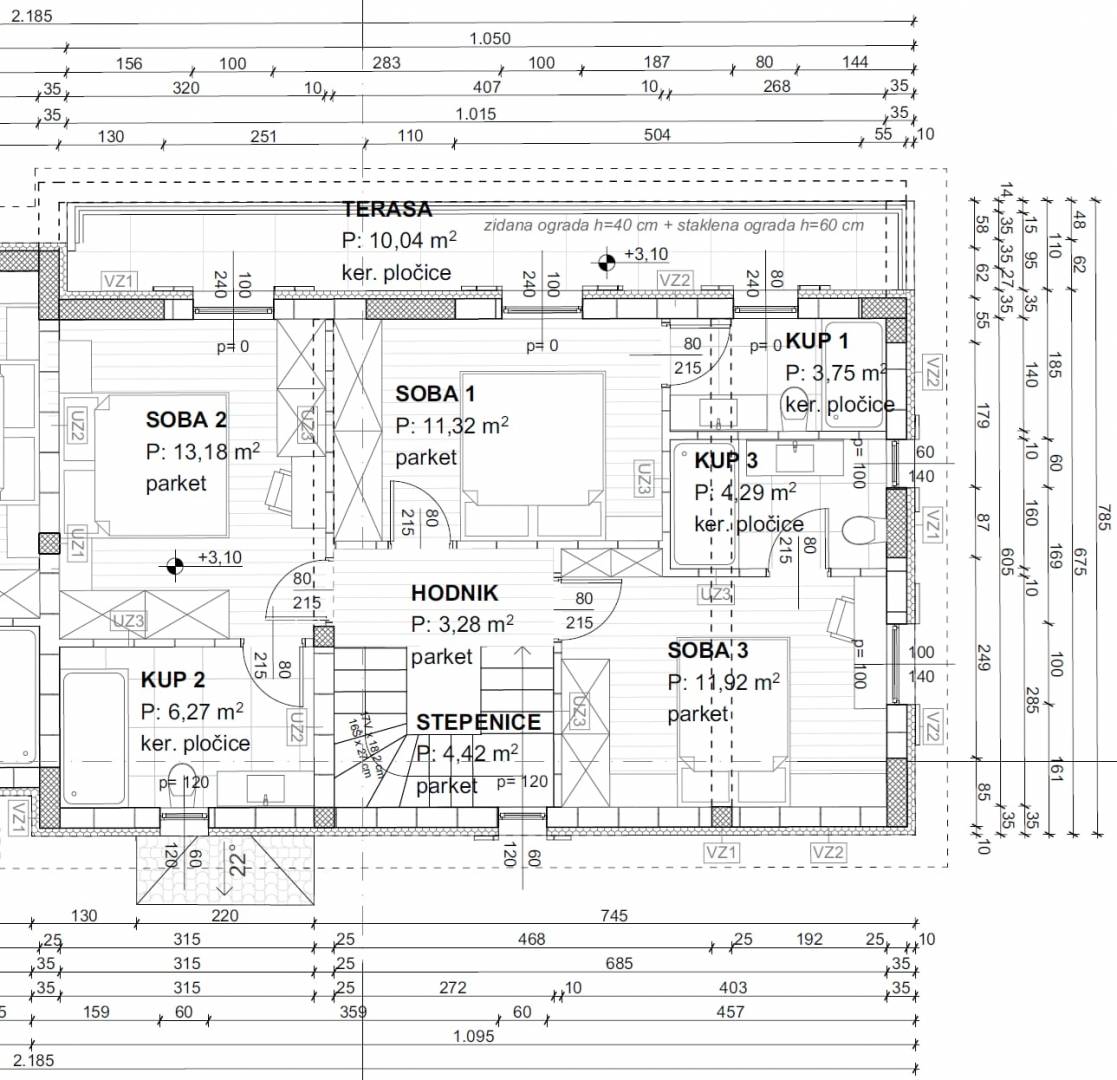 Ukupna površina kuće iznosi 130 m², okućnica oko 200 m², a bazen 21 m².