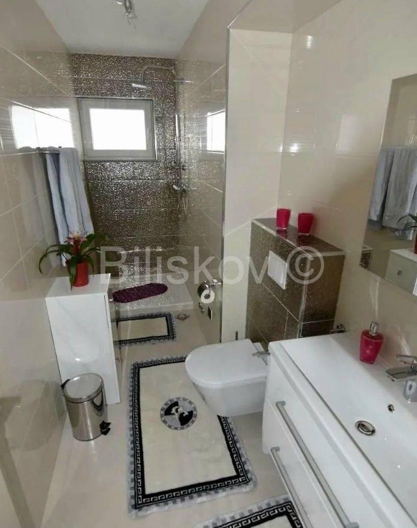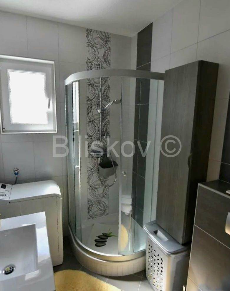 Prizemlje – Prva smještajna jedinica: Prostrani dnevni boravak s kuhinjom i blagovaonicom, dvije spavaće sobe, tri kupaonice, ostava i dvije natkrivene terase ukupne površine 67,51 m².