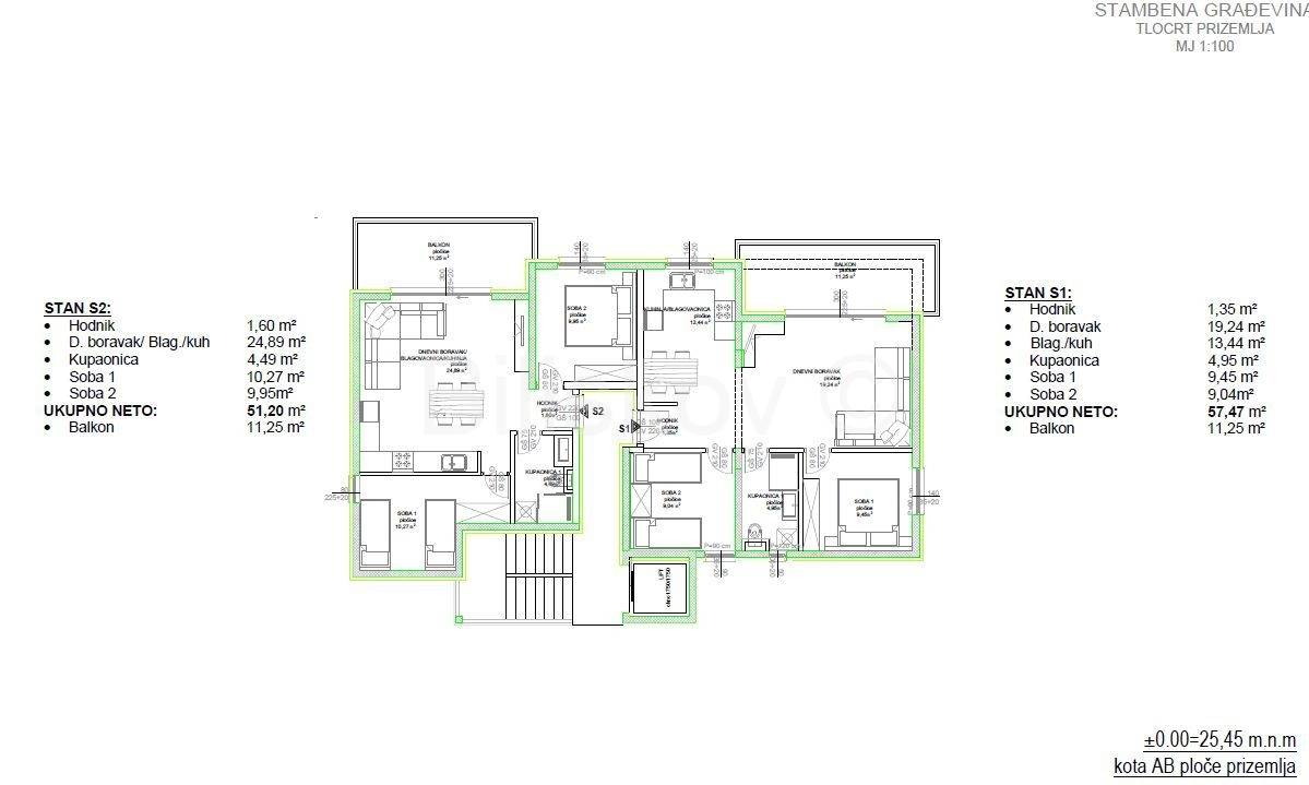 Ukupna netto površina zatvorenog stambenog dijela iznosi 51,20 m².