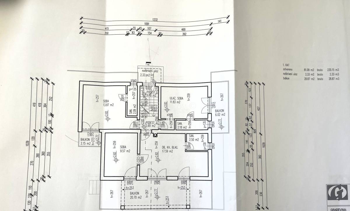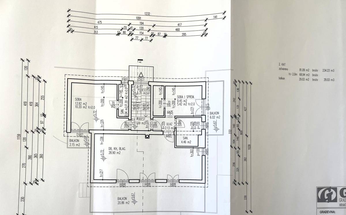 Na prvom katu nalazi se velika blagovaona s kuhinjom i terasom, TV soba, dvije spavaće sobe i tri kupaonice.