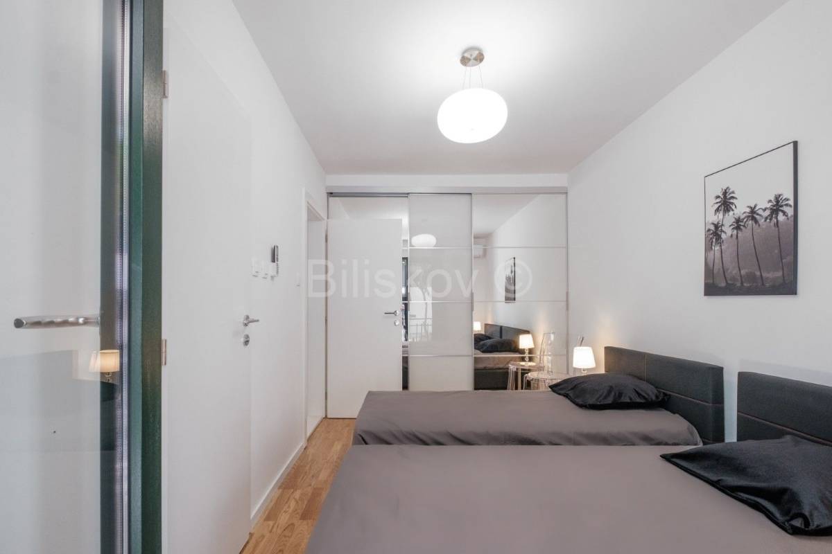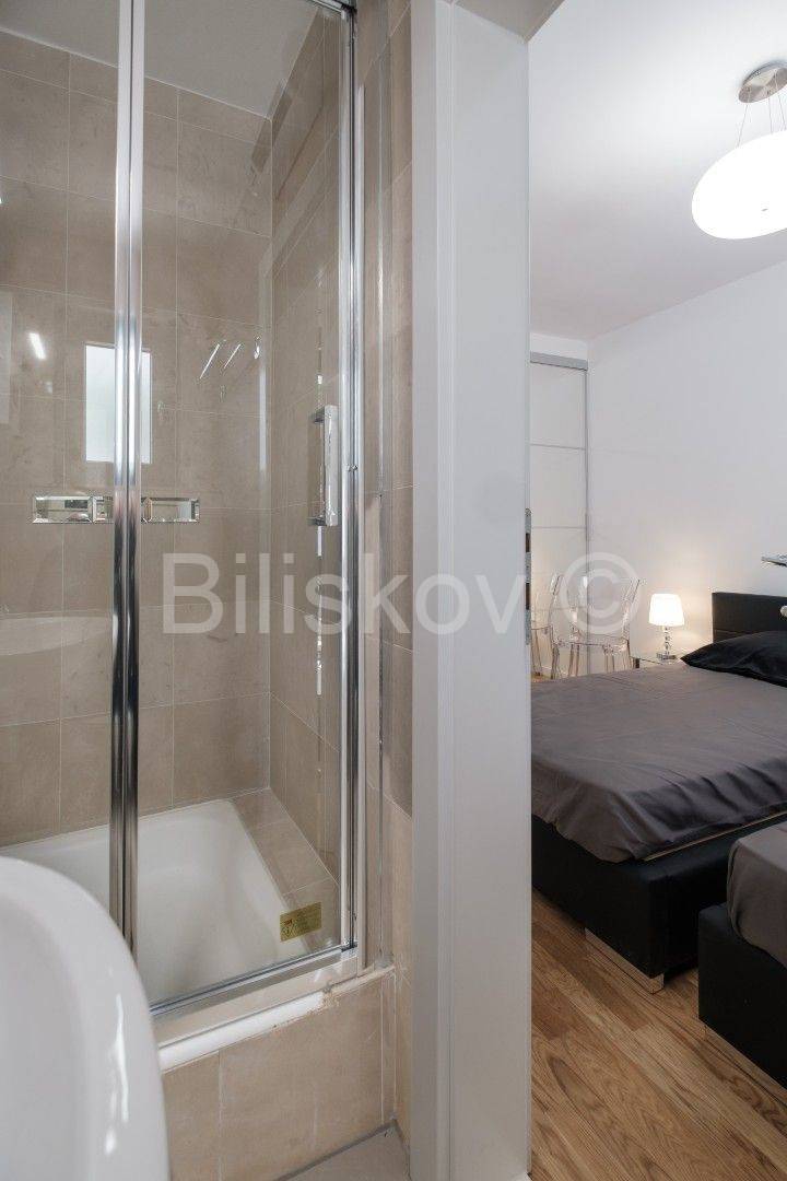 Na drugom katu se nalazi veliki dnevni boravak sa šankom i terasom, spavaća soba sa jacuzzijem, kupaonica i kuhinja sa vešerajem.