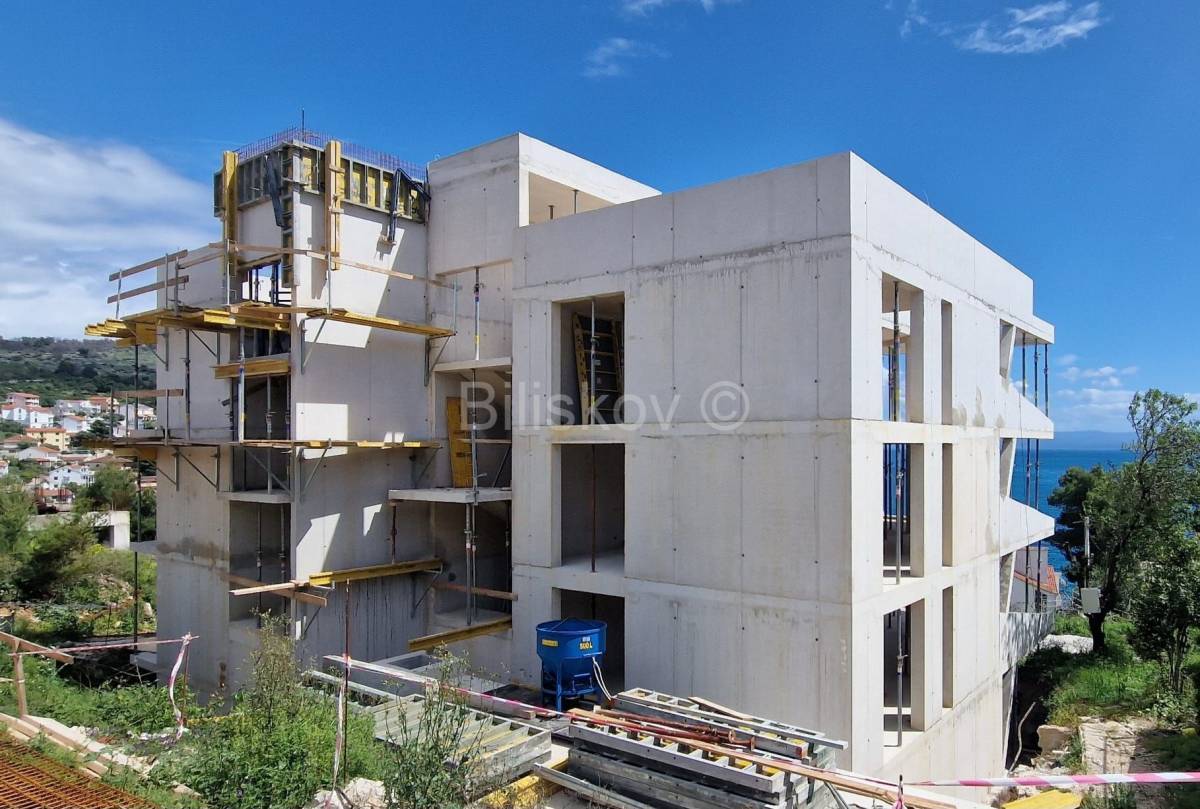 Trogir – Okrug Gornji, ekskluzivan dvosoban stan, 73 m², 1. kat, panoramski pogled na more, 100 m od plaže