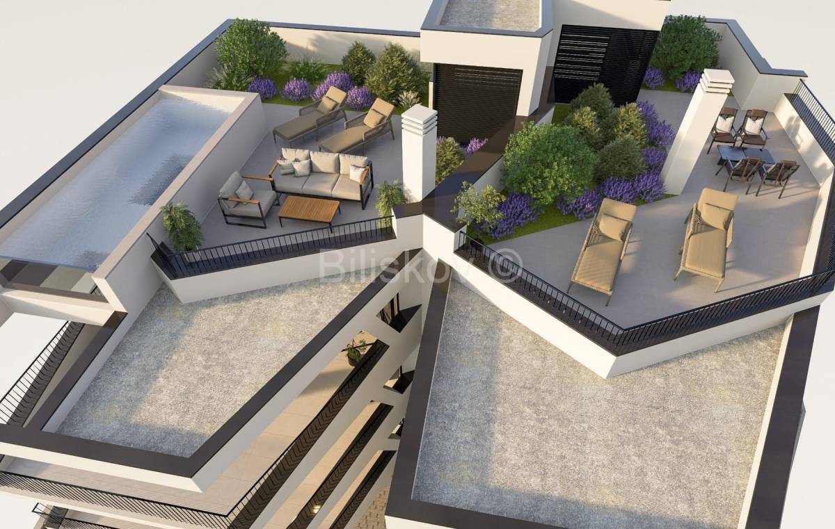 Na prodaju: luksuzan stan smješten u prestižnoj novogradnji u Okrugu Gornjem, na južnoj strani otoka Čiova, svega 100 metara od mora. Nalazi se u mirnoj slijepoj ulici, nudeći savršen spoj privatnosti, tišine i blizine svih ključnih sadržaja.