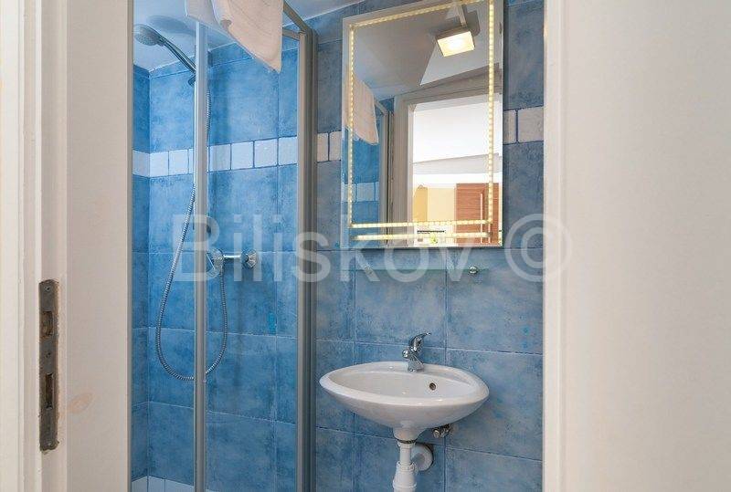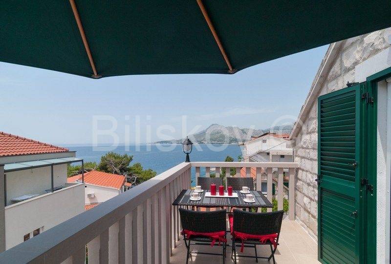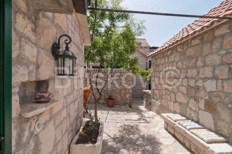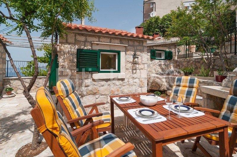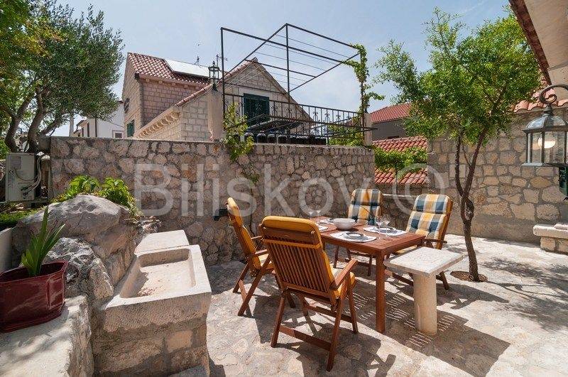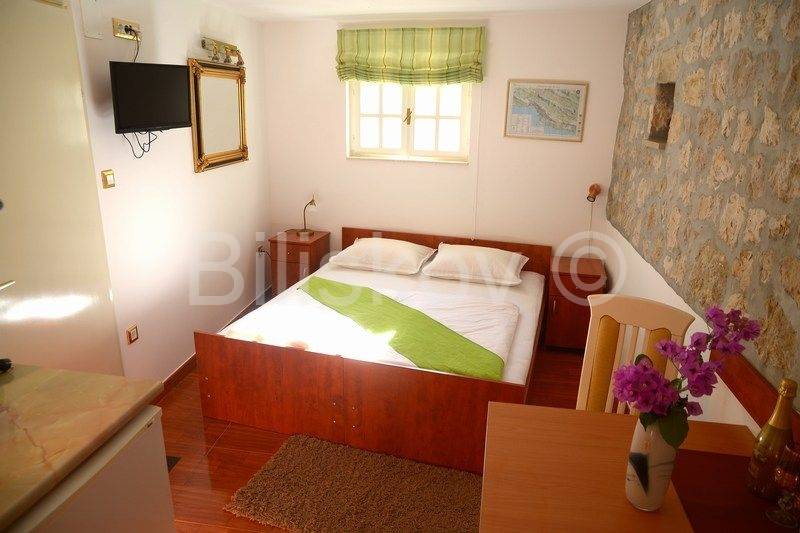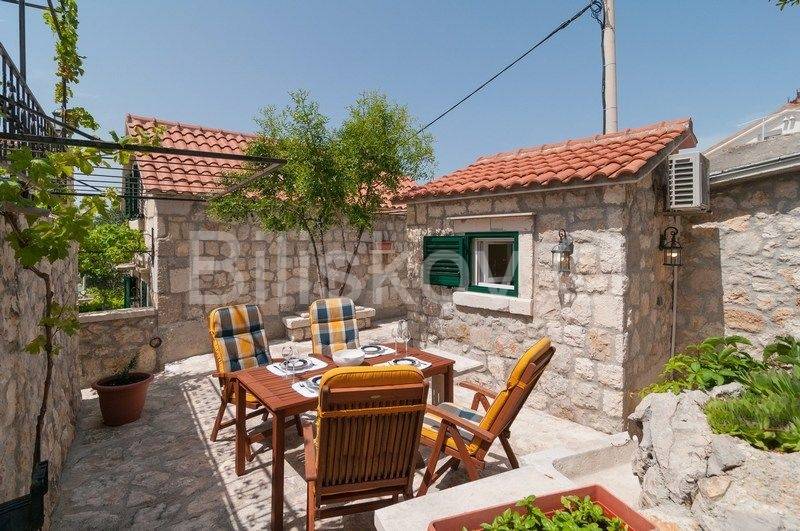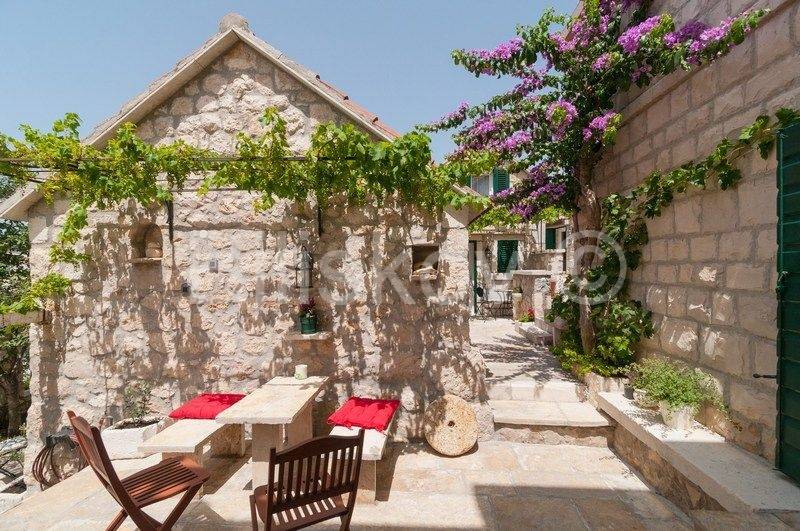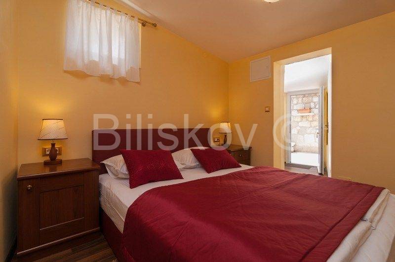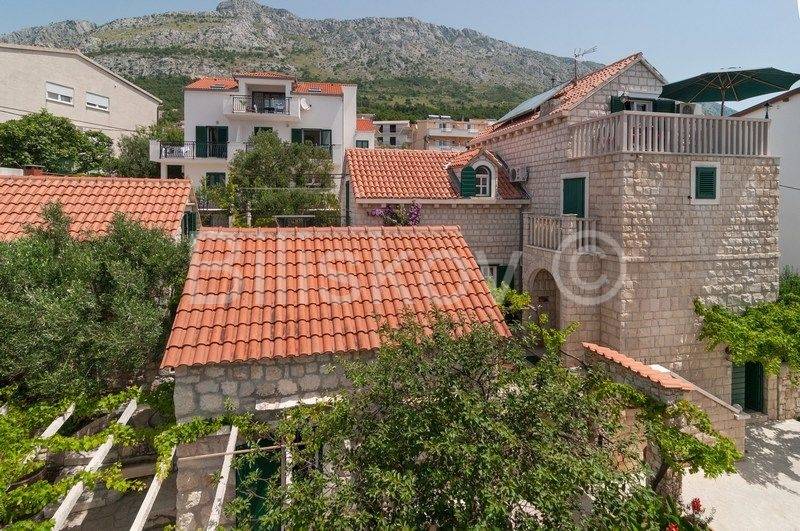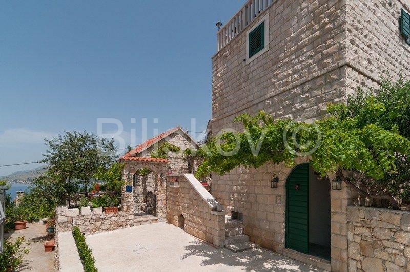 4 autohtone dalmatinske kuće, obnovljene i preuređene u tradiocionalnom dalmatinskom duhu. Najveća kuća- glavna kuća ima tlocrtnu površinu od 82 m2 i sastoji se od: suterena u kojem je smješten prostor za doručak sa svom potrebnom opremom i konoba. U prizemlju se nalazi kuhinja, blagovaonica, kupaonica i prostrani dnevni boravak. Na prvom katu su tri spavaće sobe i kupaonica, te na drugom katu zaseban apartman sa koje terase se pruža prekrasan pogled na more. Uz kuću se nadovezuje jedan manji apartman. U dvorišnom dijelu nalaze se 3 manje kućice, svaka zesebni apartman. Dvorišta je veličine 270 m2, te garaža 38 m2, ukupna površina svih objekata 322 m2.