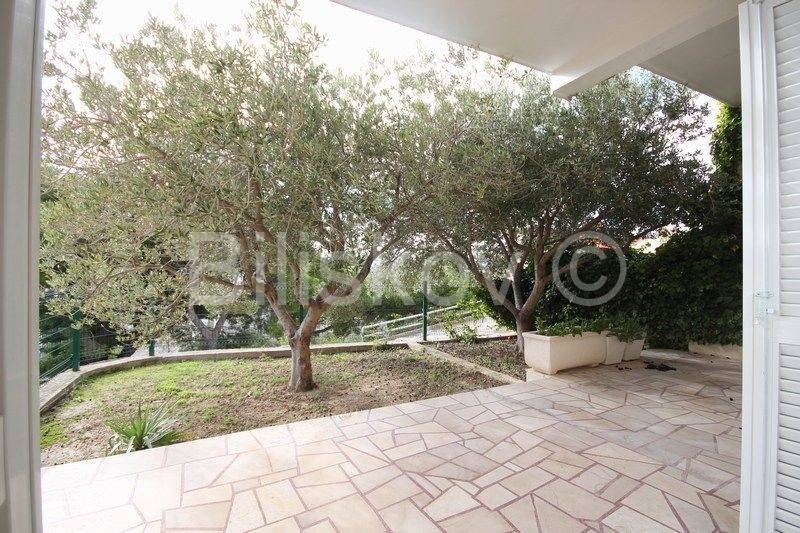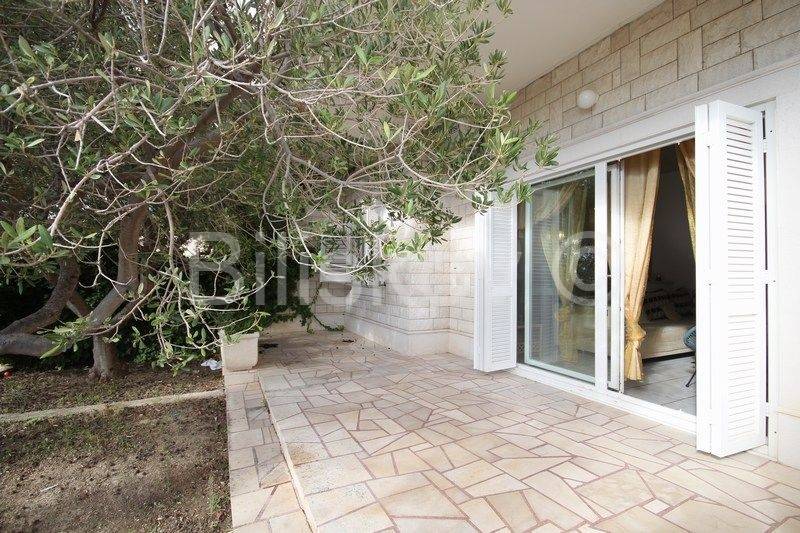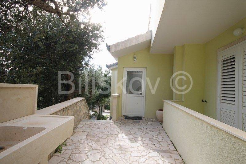 Iz dnevnog boravka se izlazi na veliku terasu ispred koje je vrt sa stablima maslina i mediteranskim biljem.