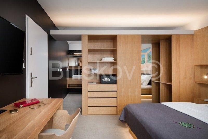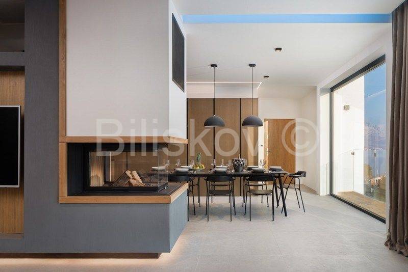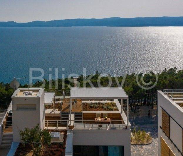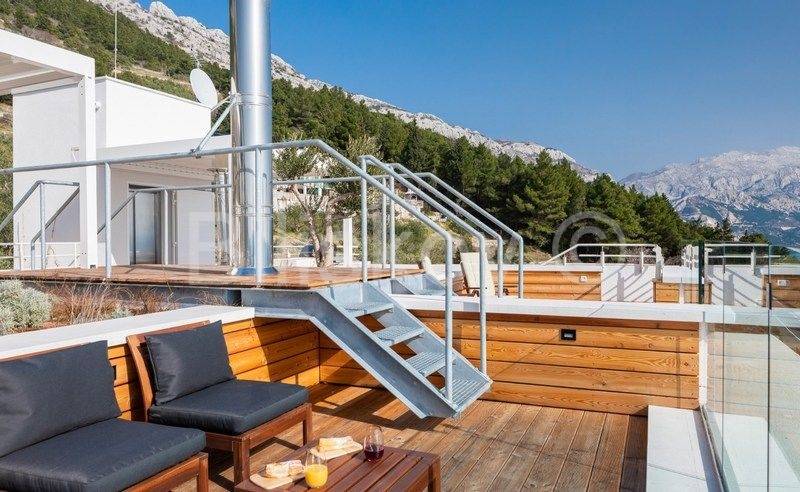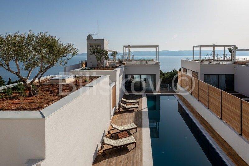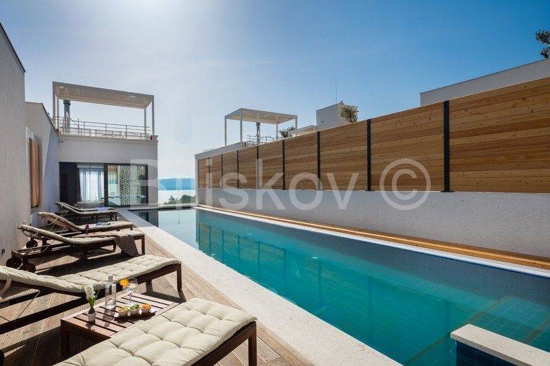 Omiš, luksuzna samostojeća vila tlocrtne površine 300 m2 sa bazenom površine 66 m2, sagrađena 2021. god. na parceli površine 956 m2. Vila se sastoji od podruma, i još dvije etaže.