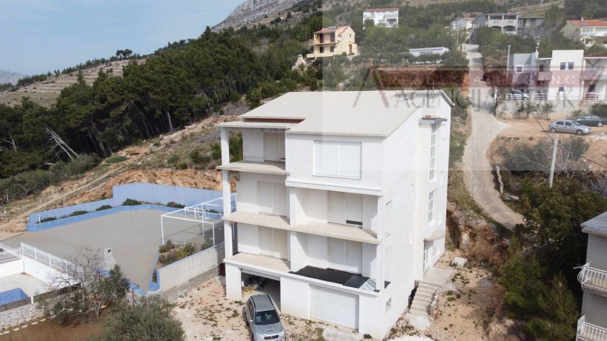 Kuća je kvalitetno građena te se sa svih etaža pruža pogled na more i otok Brač.