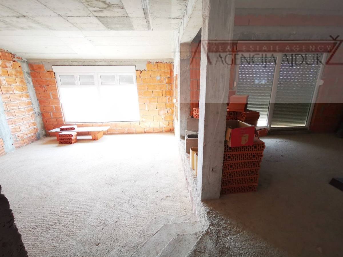 Na prvom katu se nalazi studio apartman južne orijentacije, ostava, hodnik te veliki apartman (spavaćae soba sa sjevernim balkonima, a dnevni boravak sa južnim balkonom.) Prvi kat je kompletno uređen i završen.