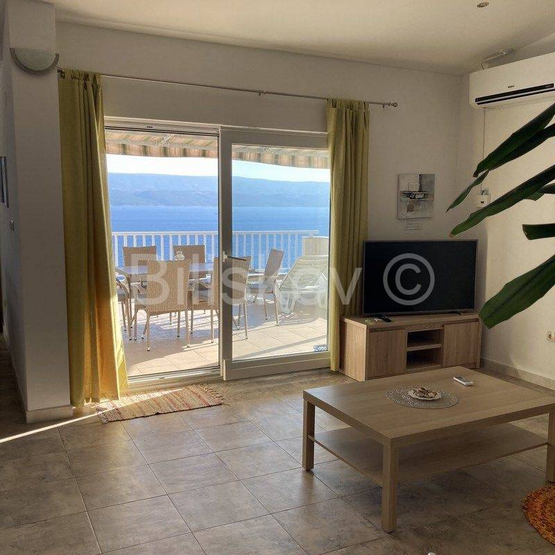2.kat: dvosoban komforan stan 80m2 sa lođom I balkonom i pogledom na more iz dnevnog boravka.