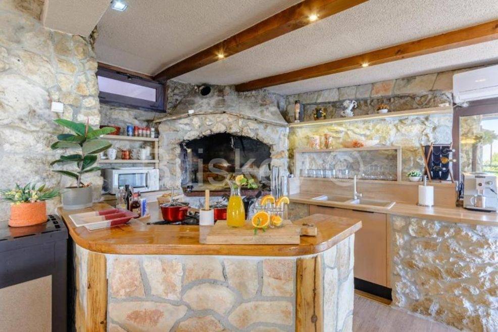 Unutar objekta se nalaze dnevni prostor, 4 spavaće sobe, 3 kupaonice, unutarnja i vanjska kuhinja, velika praonica rublja i infinity bazen 25m2 te posebni apartman površine cca. 40 m2.