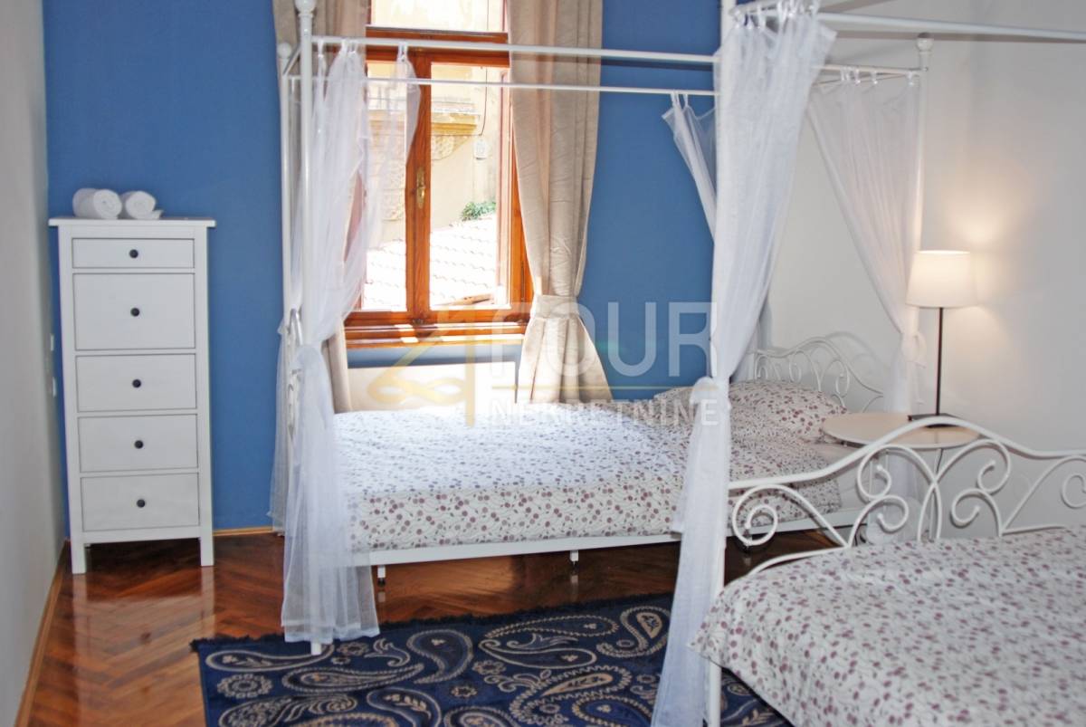 Stan površine 90 m2 sastoji se od dvije spavaće sobe i dnevnog boravka, a odlikuju ga visoki stropovi, očuvana drvena stolarija i vrlo ugodan raspored prostora. Nekretnina je temeljito adaptirana te je danas u dobrom i urednom stanju, spremna za useljenje ili nastavak turističkog iznajmljivanja, za što već posjeduje kategorizaciju.