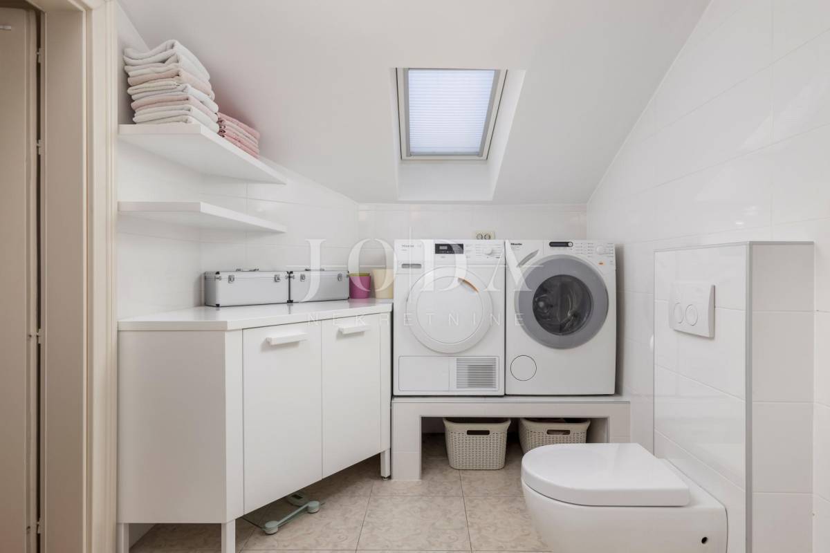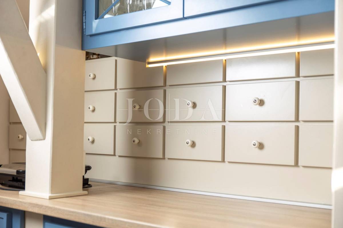 Sam stan je potpuno preuređen u skladu sa konzervatorima te dizajnerski namješten i osmišljen.Visoko potkrovlje ,velikih visina,prepuno svijetla i sa pogledom na more.