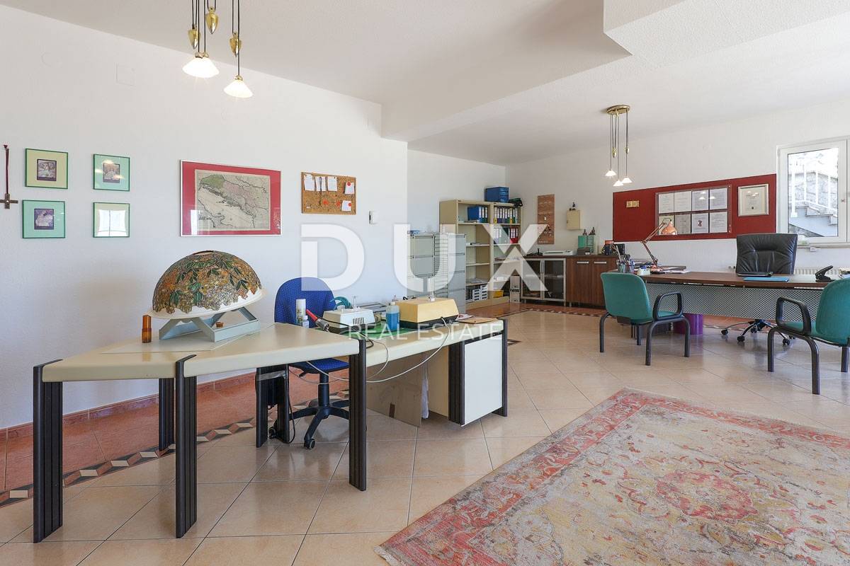 U prizemlju se nalazi prostrani poslovni prostor, ljetna kuhinja, parna kupelj, radionica i kotlovnica. Po želji kupca ta se etaža može pretvoriti u jednu odvojenu stambenu jedinicu.