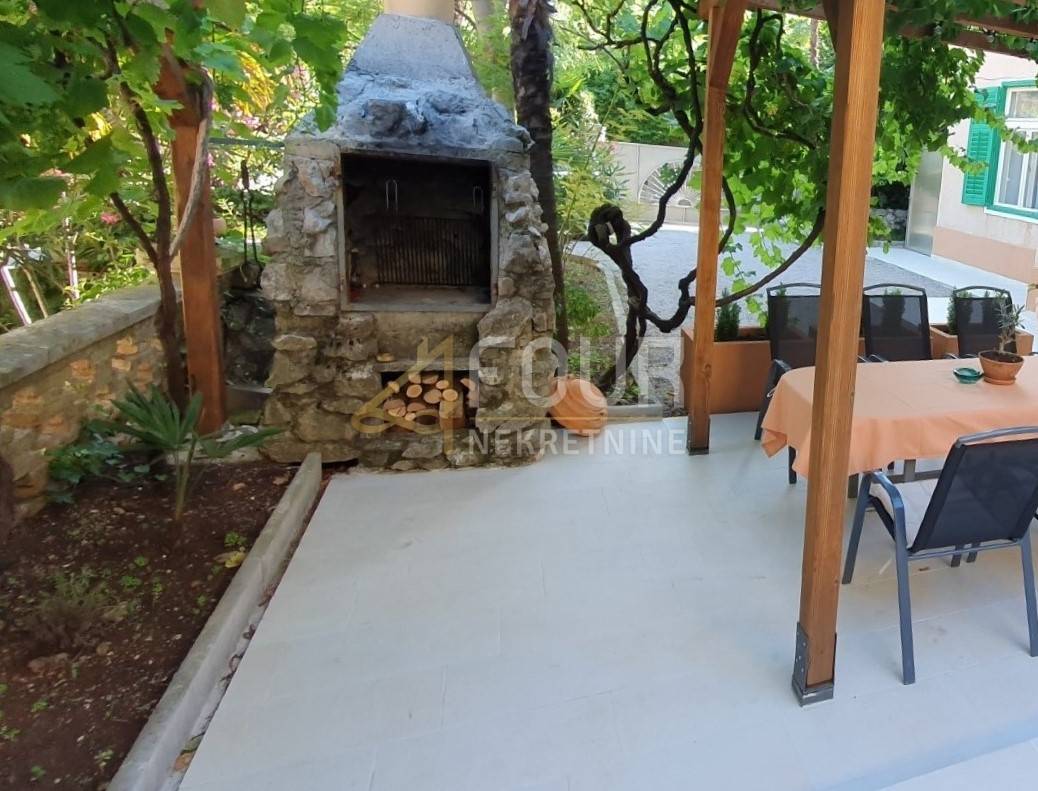 Obuhvaća prizemlje i prvi kat, ima zaseban ulaz te pripadajuću okućnicu površine 136 m2, što osigurava visoku razinu privatnosti i osjećaj života u kući. Ukupna stambena površina iznosi 205,46 m2 te uključuje prostrane i dobro organizirane unutarnje prostore, verandu i dva balkona koji pružaju dodatni ugođaj boravka u klasičnoj primorskoj arhitekturi.