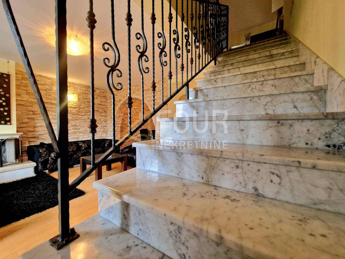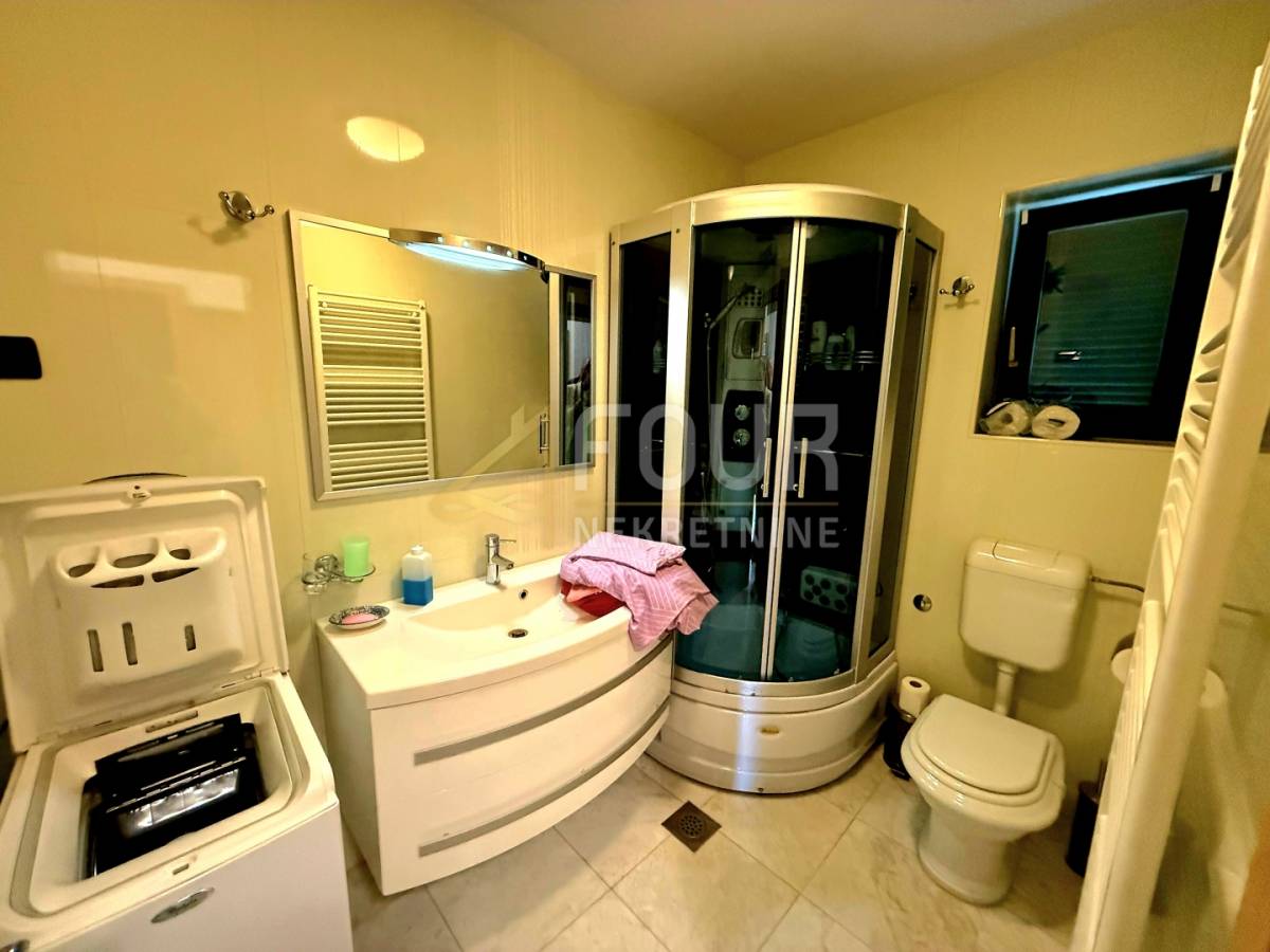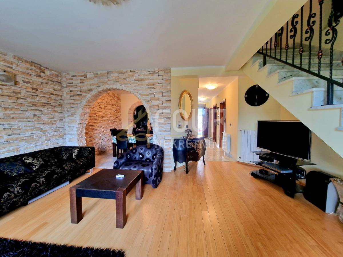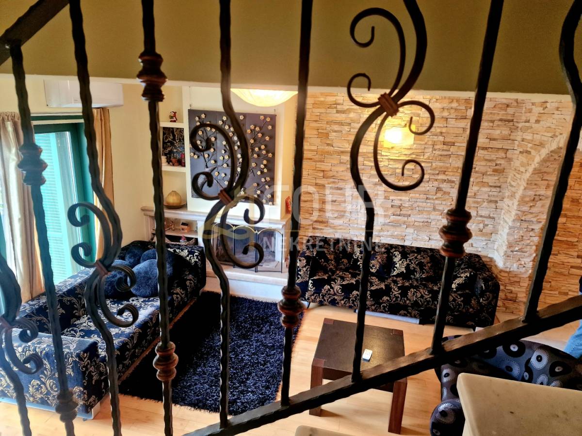 U suterenu se nalazi jednosobni stan s kuhinjom i kupaonicom, s izlazom u ugodan, intiman vrt koji pruža savršeno mjesto za opuštanje i uživanje u jutarnjoj kavi. Prizemlje obuhvaća komforan dvosoban stan s dnevnim boravkom, koji se sastoji od hodnika, spremišta, kuhinje s blagovaonicom povezane s dnevnim boravkom, dvije spavaće sobe te dva balkona. Dodatni ugođaj pruža kamin, a ispred stana nalazi se natkriveni prostor za druženje, ljetna kuhinja s roštiljem te osigurana struja i voda, dok krov ujedno služi kao parkirni prostor.
