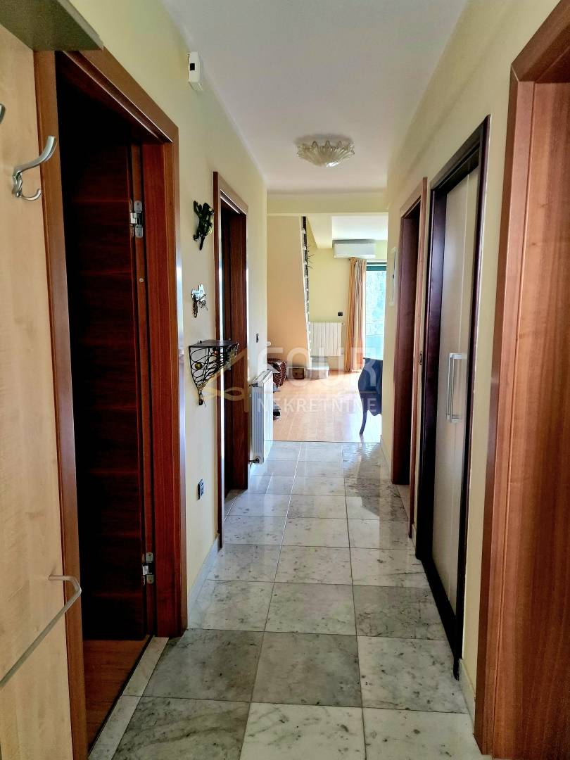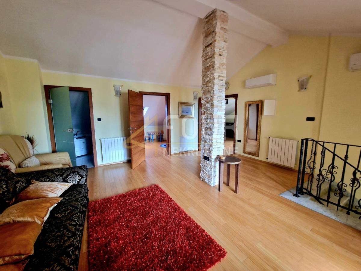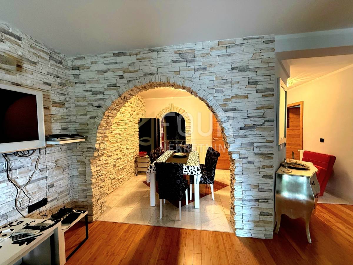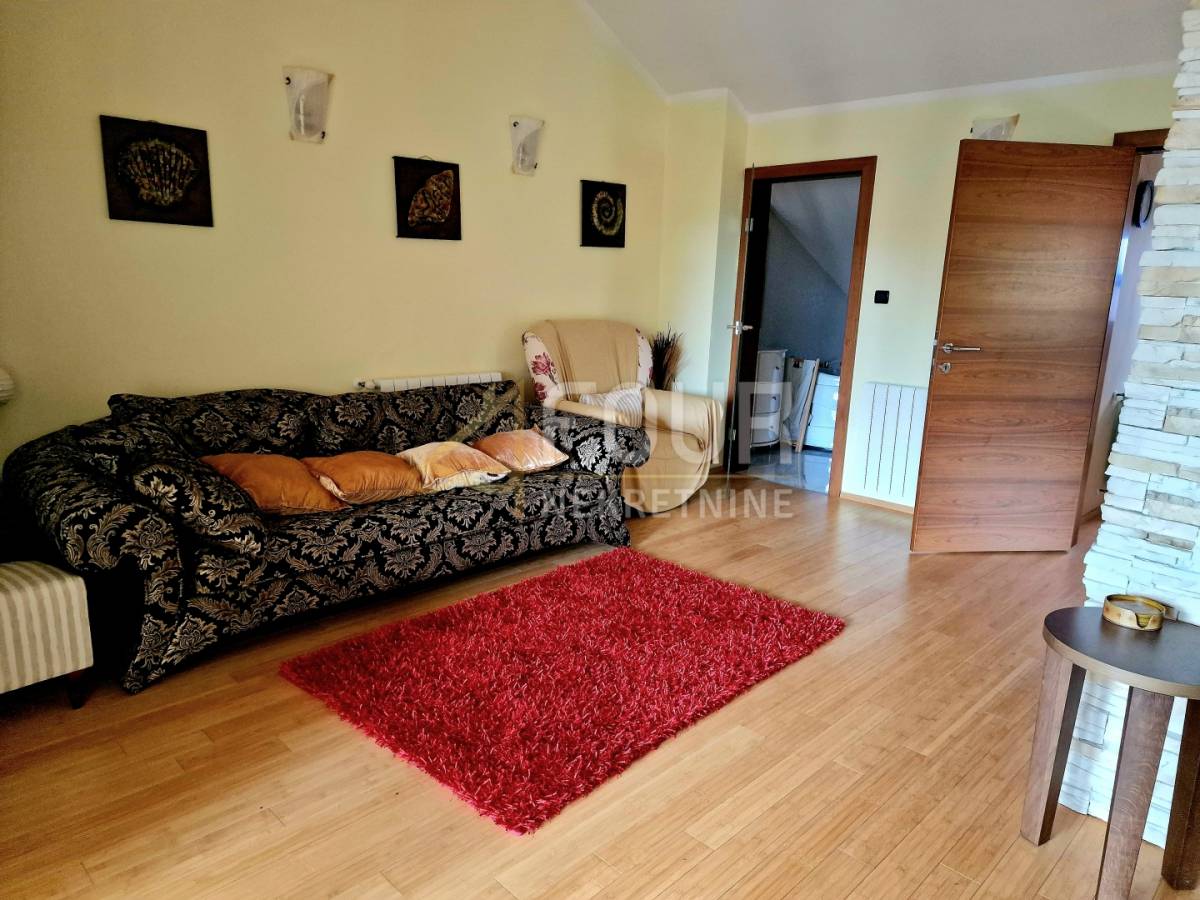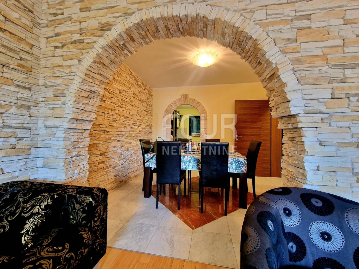 U suterenu se nalazi jednosobni stan s kuhinjom i kupaonicom, s izlazom u ugodan, intiman vrt koji pruža savršeno mjesto za opuštanje i uživanje u jutarnjoj kavi. Prizemlje obuhvaća komforan dvosoban stan s dnevnim boravkom, koji se sastoji od hodnika, spremišta, kuhinje s blagovaonicom povezane s dnevnim boravkom, dvije spavaće sobe te dva balkona. Dodatni ugođaj pruža kamin, a ispred stana nalazi se natkriveni prostor za druženje, ljetna kuhinja s roštiljem te osigurana struja i voda, dok krov ujedno služi kao parkirni prostor.