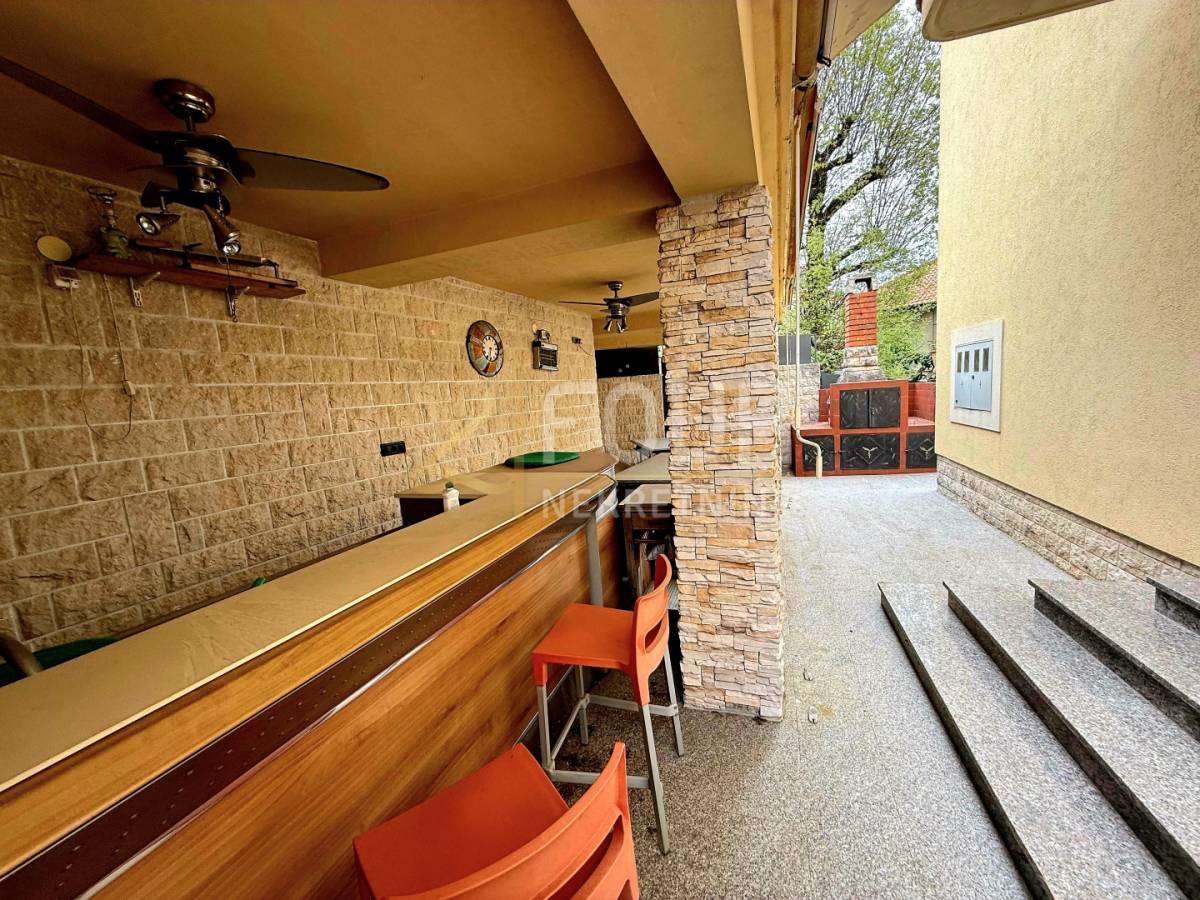 Kuća raspolaže vrtom, ljetnom kuhinjom i drvarnicom. Grijanje je riješeno putem klima uređaja te etažnog električnog grijanja s radijatorima.