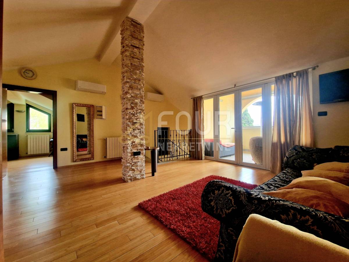 Na katu se smjestio prostrani dvoetažni stan, koji se sastoji od četiri spavaće sobe, dva dnevna boravka, dvije kupaonice te kuhinje s blagovaonicom. Donja etaža organizacijom prostora odgovara stanu u prizemlju, dok gornja etaža obuhvaća dodatni dnevni boravak, dvije sobe, kupaonicu i lođu odnosno terasu.