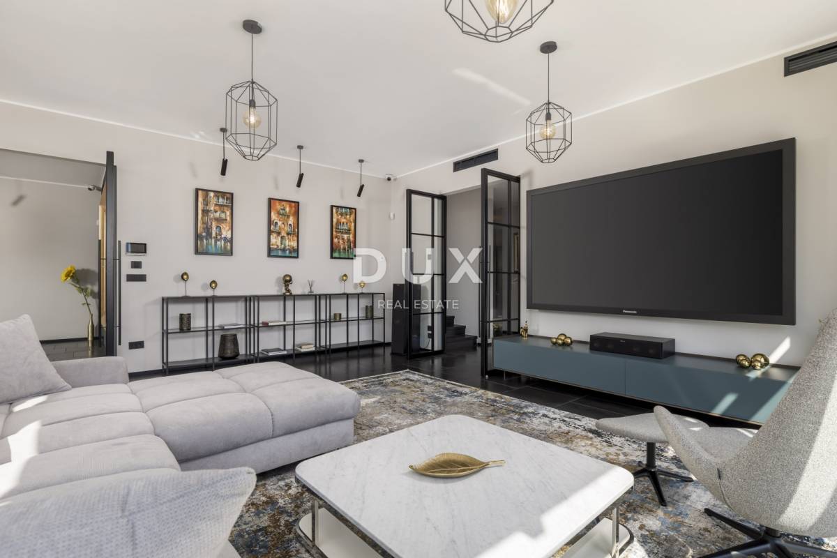 Do vile se dolazi privatnim dizalom, koje već pri samom dolasku pruža poseban doživljaj ekskluzivnosti. Interijer odiše profinjenošću – vrhunski dizajnerski namještaj, moderna kuhinja i dnevni boravak s toplom atmosferom savršen su izbor za zimske mjesece.