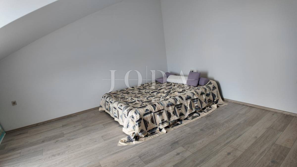 Unutarnjim stubištem stan je povezan s potkrovljem, u kojem se nalazi dodatna kuhinja s blagovaonicom, spavaća soba i još jedna prostorija koja se može koristiti kao spremište, radna soba ili dodatni prostor po želji. Iz blagovaonice i dnevnog boravka omogućen je izlaz na prostranu krovnu terasu, idealnu za uživanje na otvorenom.