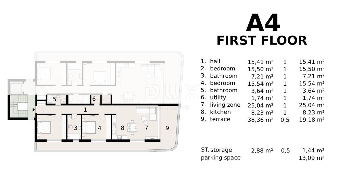 • spremište: 2,88 m² (1,44 m² s koeficijentima)