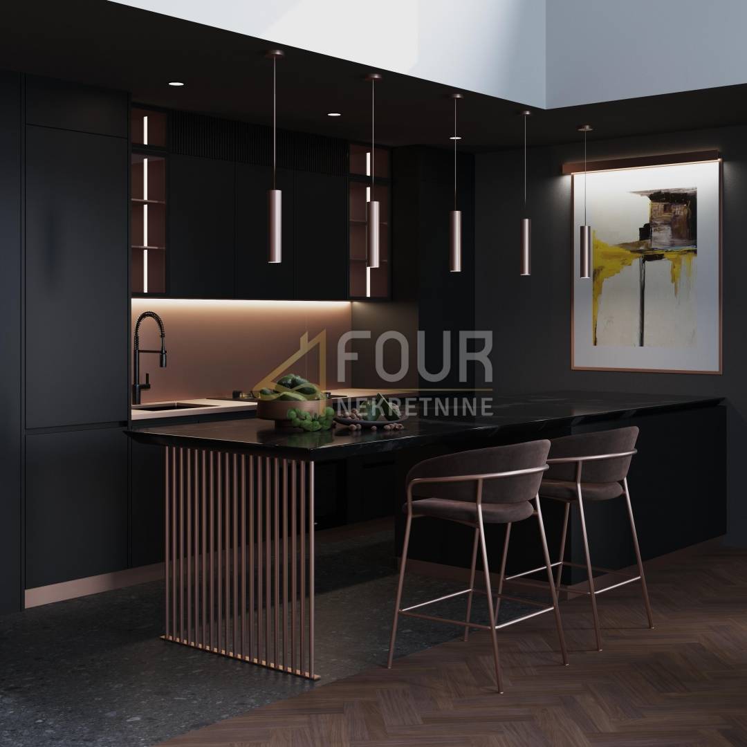 Penthouse se prostire na 131.44m2 i smješten je u zgradi s ukupno četiri etaže. Orijentiran je na jug, istok i sjever, a s terase ukupne površine 30.70 m2 pruža se prekrasan pogled na more. U interijeru dominiraju kvalitetni materijali i vrhunska oprema: podno grijanje, klima uređaji s dizalicama topline, aluminijska stolarija, električne rolete te protuprovalna vrata. Sustavi video nadzora i alarma dodatno doprinose sigurnosti i udobnosti.