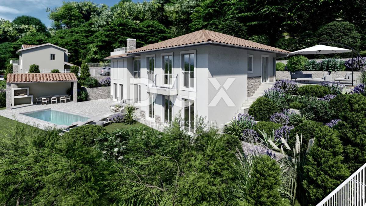 OPATIJA, LOVRAN, IKA- villa 220m2 s panoramskim pogledom na more i bazenom + uređena okućnica 1009m2