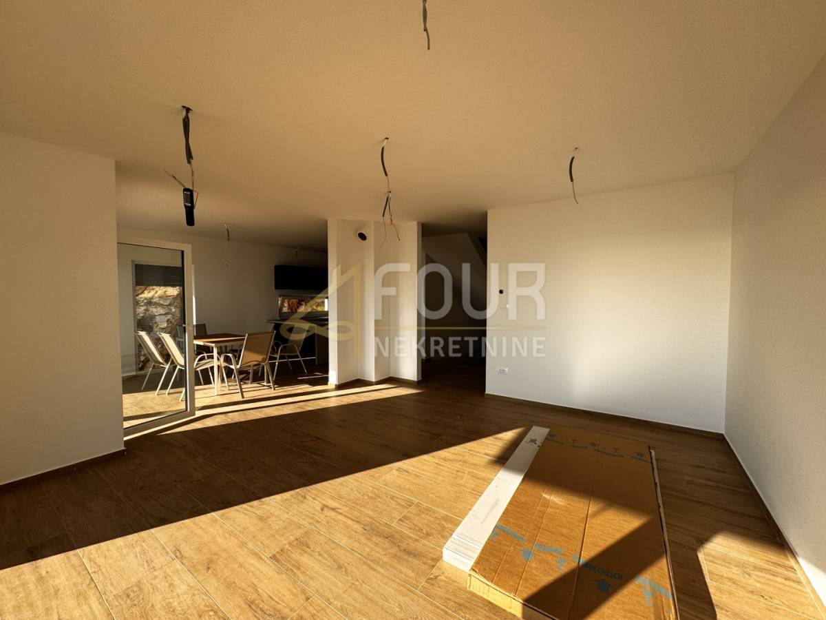 Na katu su tri elegantne spavaće sobe, svaka s vlastitom kupaonicom, a s južne strane pruža se veliki balkon s prekrasnim panoramskim pogledom na more i Kvarnerske otoke.