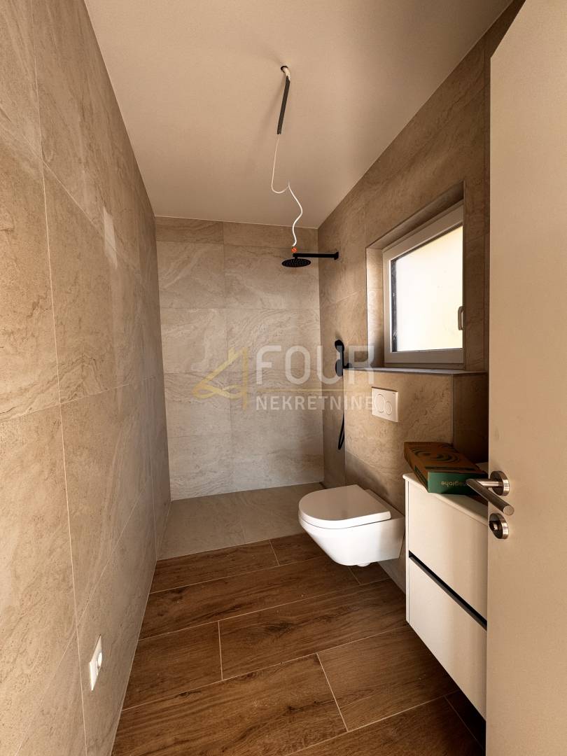 Vila će biti opremljena suvremenim sustavima za udoban i siguran život – podnim grijanjem putem dizalice topline, klima uređajima, solarnim panelima, video nadzorom, električnim roletama, protuprovalnim vratima i aluminijskim sustavom stolarije.
