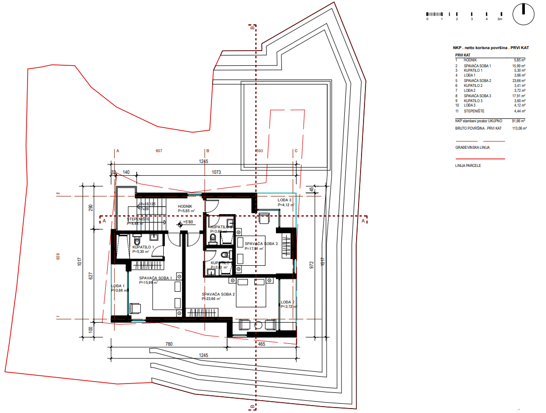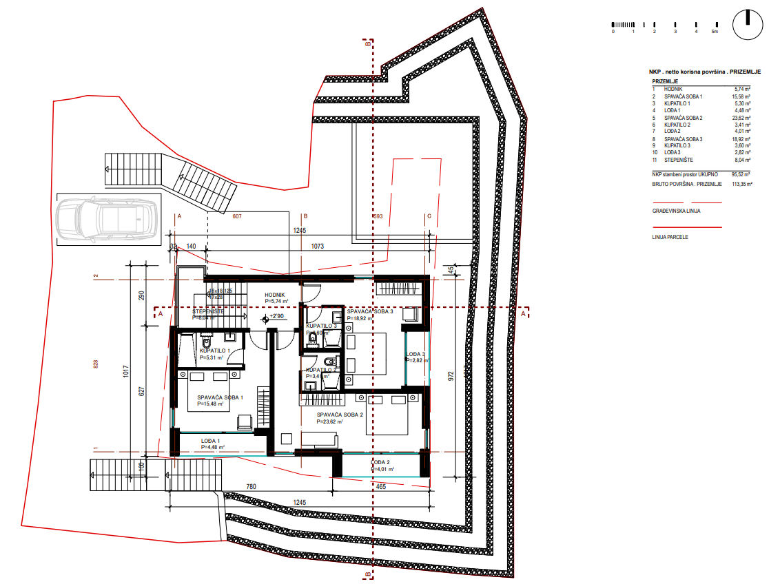 Kroz velike otvorene klizne stijene, prostor će obilovati prirodnom svjetlošću, a s terase ili vrta moći ćete uživati u panoramskom pogledu na more. Što se tiče unutarnjeg prostora, kuća će imati 7 spavaćih soba, od kojih će svaka biti uređena s pažnjom prema kvaliteti, a svaka od tih soba imati će i vlastitu kupaonicu. U podrumu će se nalaziti kuglana, unutarnji bazen i wellness s dvije saune i jednim jacuzzijem.