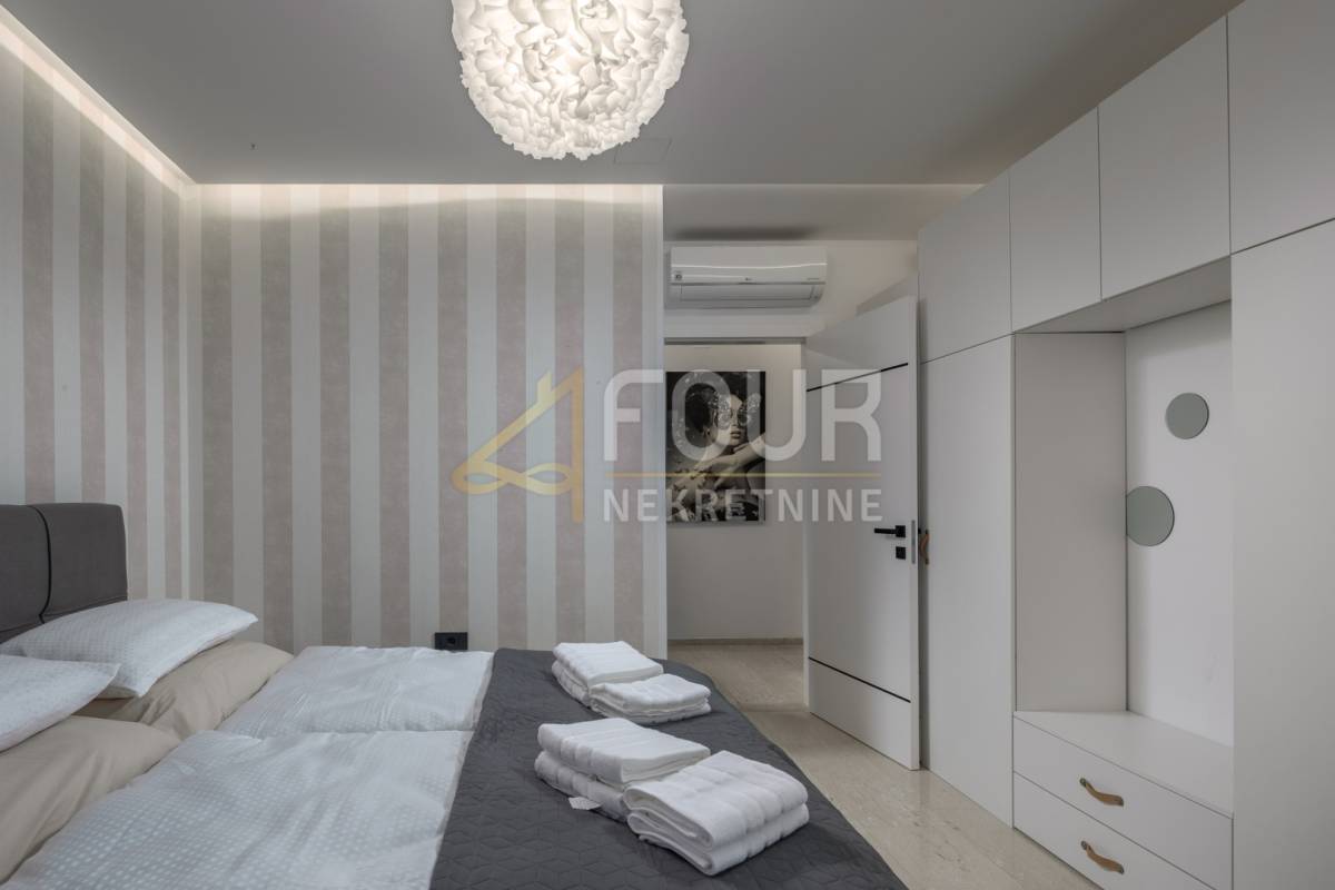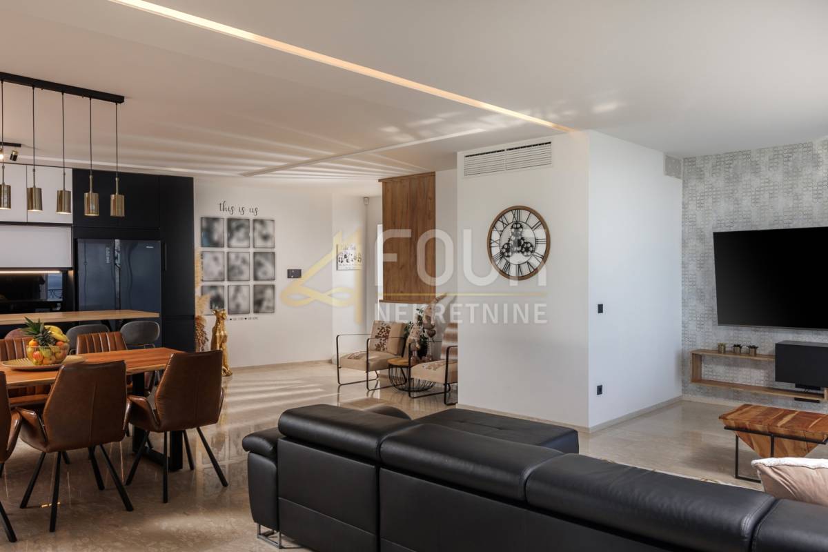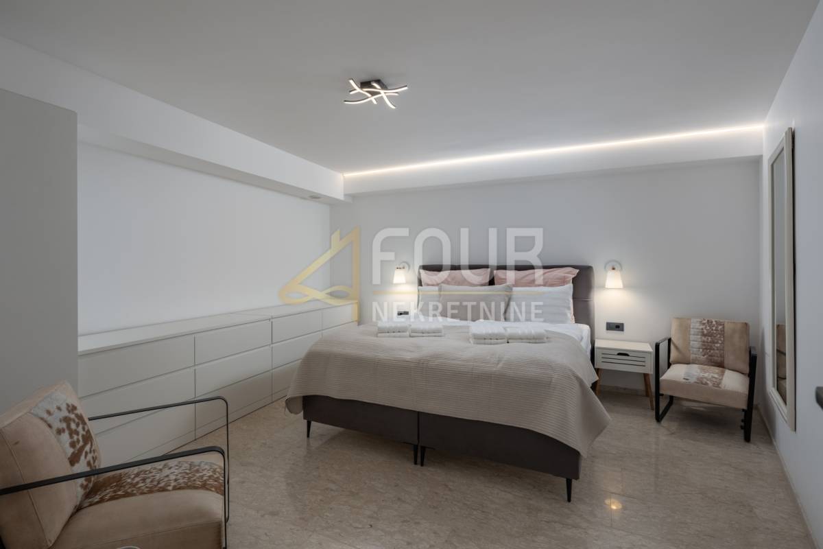 Svega 350 metara od mora, smješten je luksuzan dvoetažni stan u modernoj novogradnji iz 2023. godine koji pruža vrhunsku razinu komfora, privatnosti i elegancije. Ukupne površine sa svim pripadajućim prostorijama 294,64 m2, ovaj impresivan 4S+DB stan proteže se kroz dvije etaže te ima zaseban ulaz, vlastiti portun i kolni pristup, čime osigurava potpunu privatnost budućim vlasnicima.