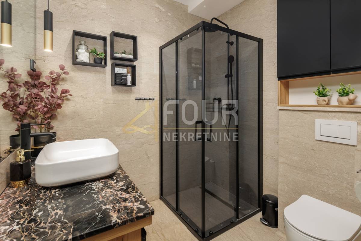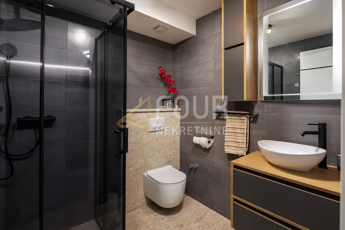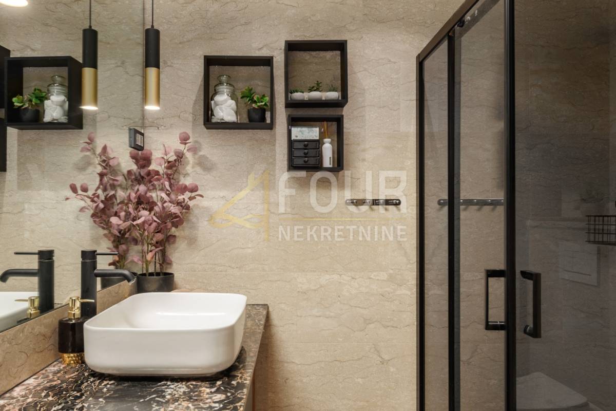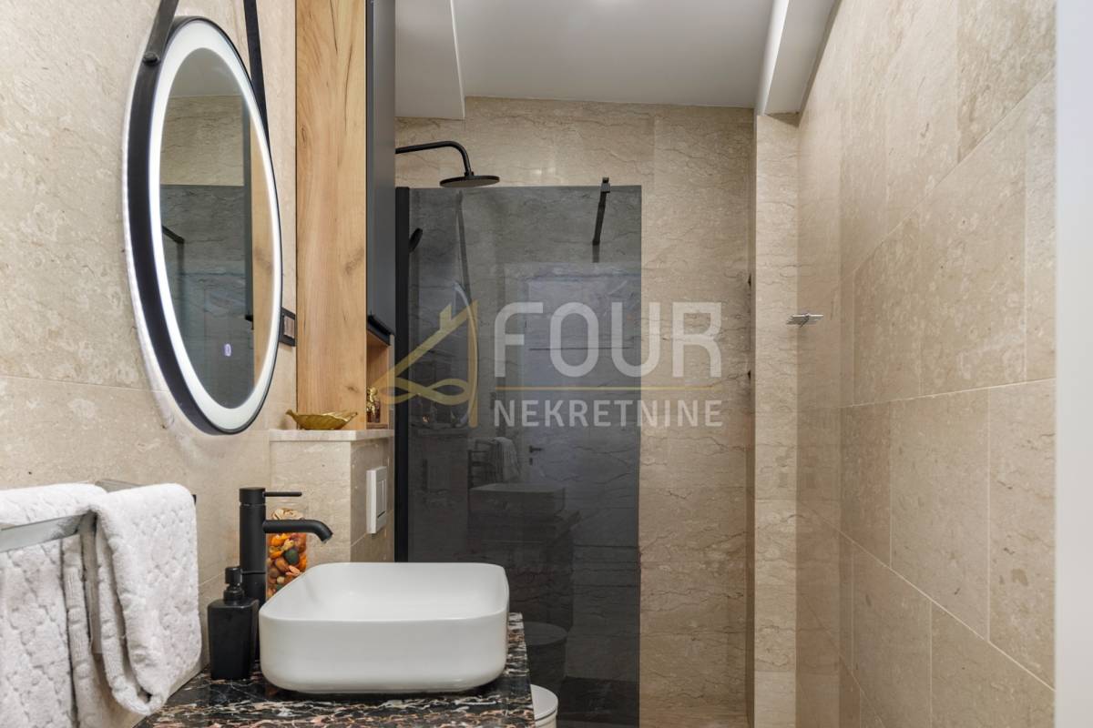Svega 350 metara od mora, smješten je luksuzan dvoetažni stan u modernoj novogradnji iz 2023. godine koji pruža vrhunsku razinu komfora, privatnosti i elegancije. Ukupne površine sa svim pripadajućim prostorijama 294,64 m2, ovaj impresivan 4S+DB stan proteže se kroz dvije etaže te ima zaseban ulaz, vlastiti portun i kolni pristup, čime osigurava potpunu privatnost budućim vlasnicima.