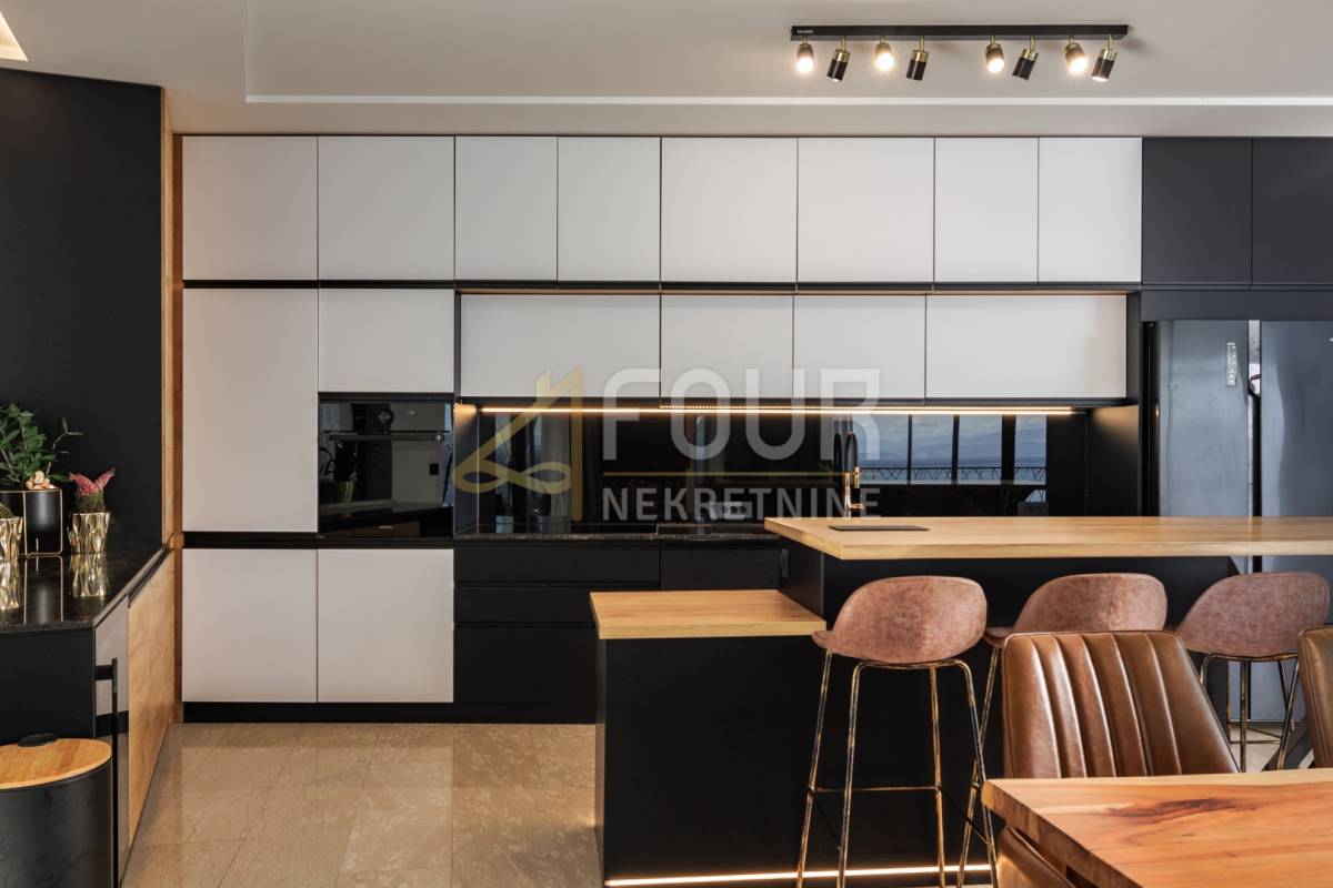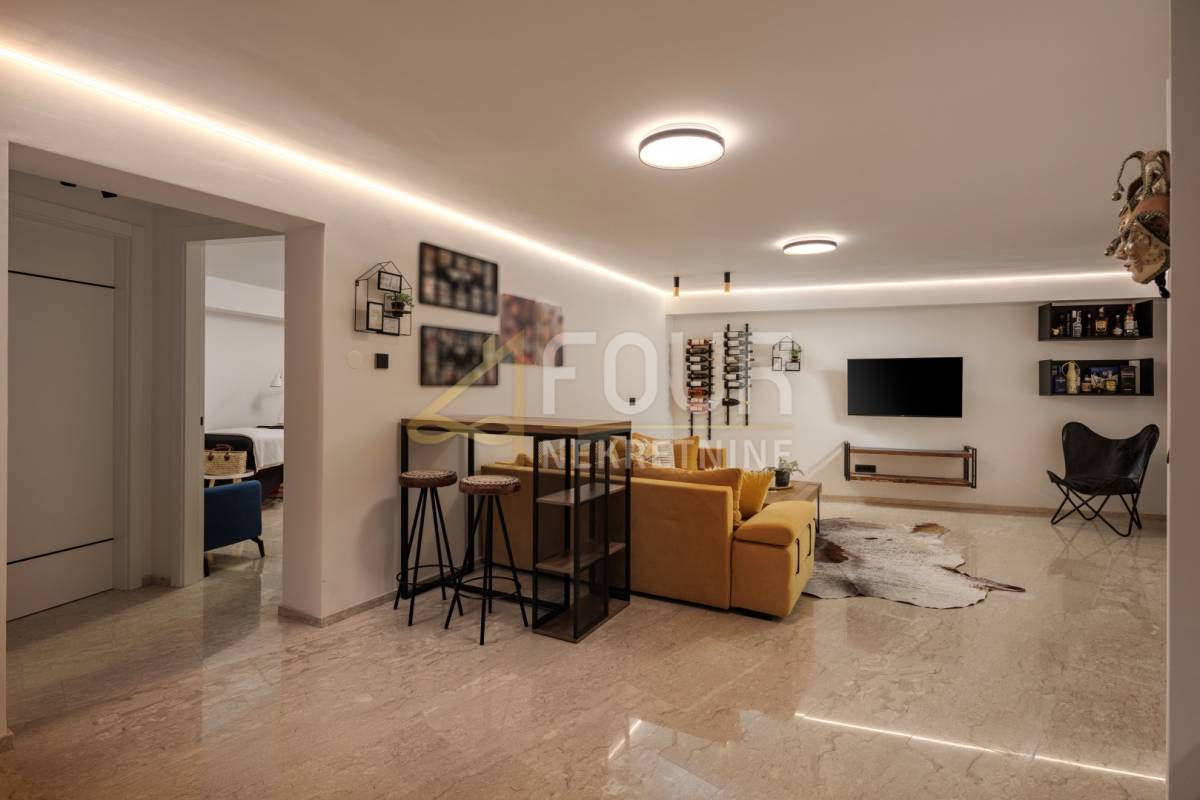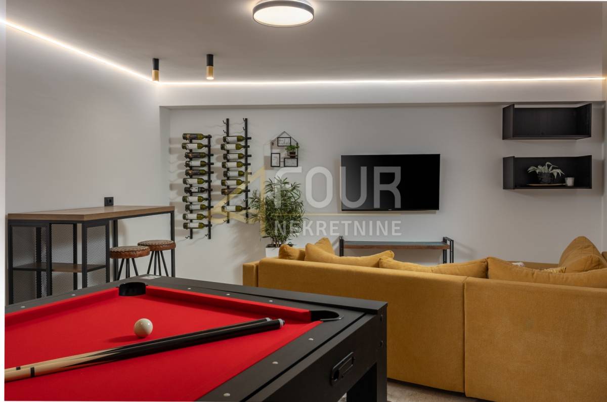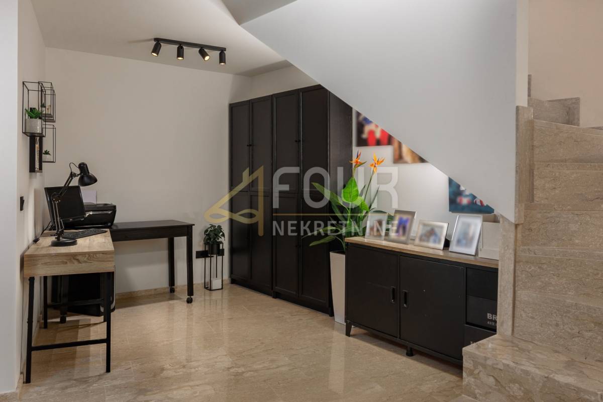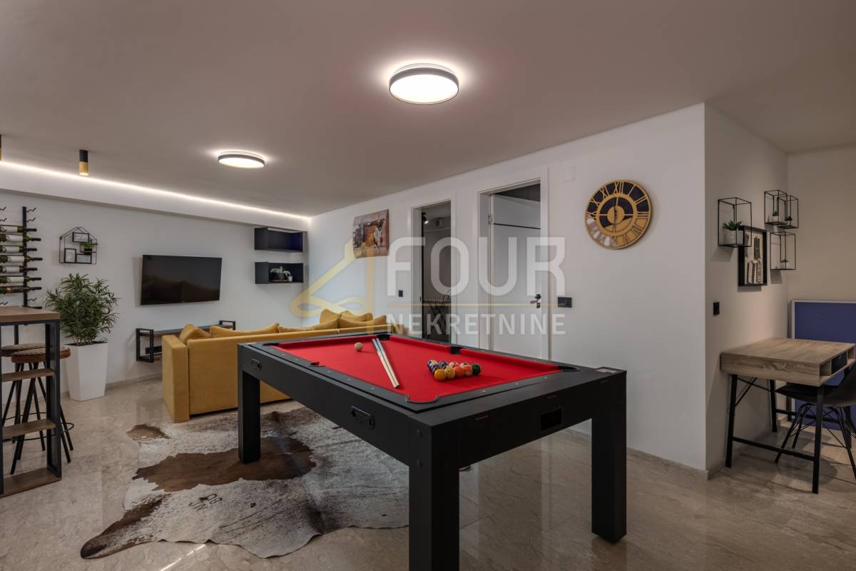 Stan raspolaže s četiri spavaće sobe, uključujući master sobu s vlastitom kupaonicom, dodatnim elegantno uređenim kupaonicama, radnom sobom s integriranim wine barom i prostorom za biljar te zasebnom tehničkom prostorijom.