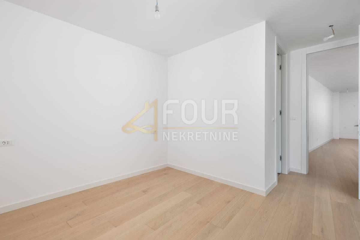 Stan u ponudi odlikuje se suvremenim rasporedom s dvije spavaće sobe, dvije kupaonice i dodatnim WC-om te pruža iznimno ugodan životni prostor. Površina stana ima površinu od 108.97 m2, s terasom površine 24,91 m2 koja omogućuje produžetak dnevnog boravka prema eksterijeru i uživanje u privatnosti te blagoj mediteranskoj klimi. Uz stan dolaze dva garažna parkirna mjesta, svaki 12,50 m2, te dva spremišta ukupne površine 5,76 m2.