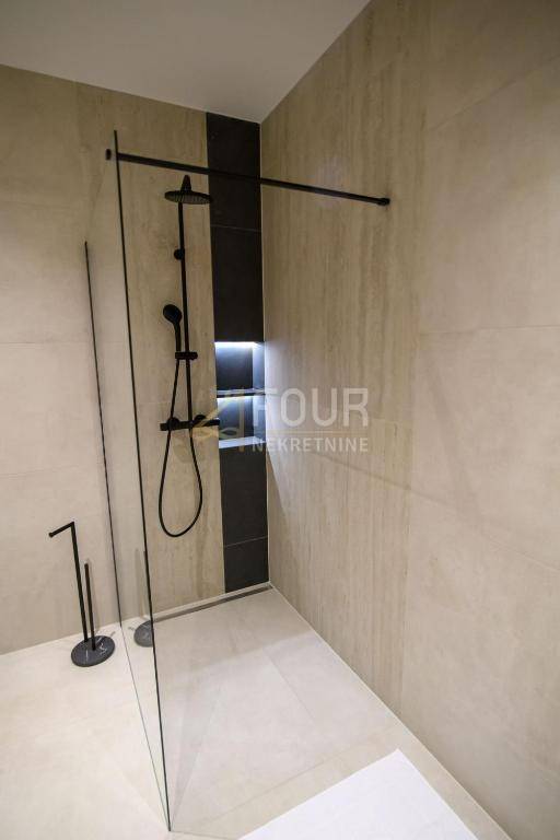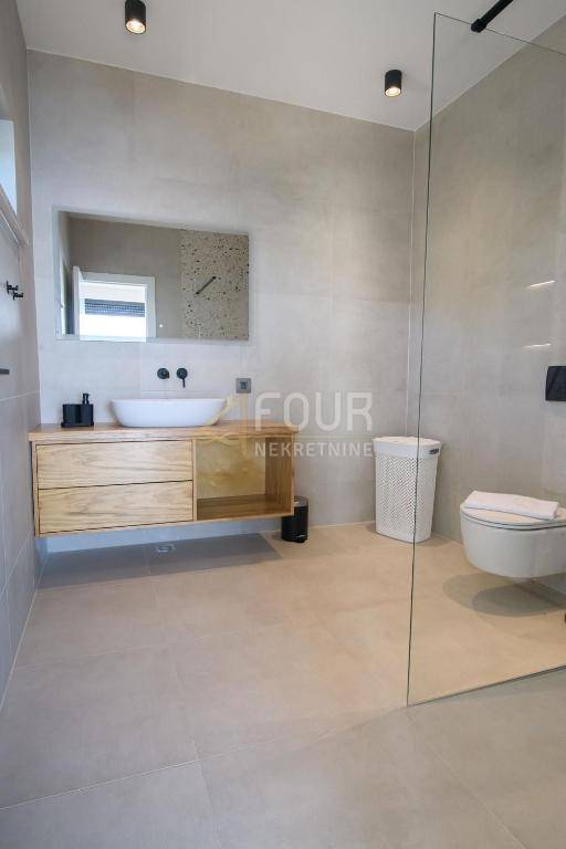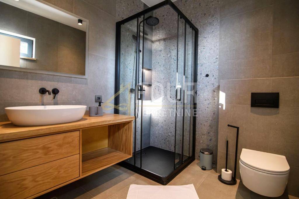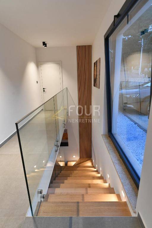 Kuća je građena prema visokim standardima, opremljena aluminijskom stolarijom, dizalicom topline, podnim grijanjem i klima-uređajima, uz dodatnu sigurnost koju pružaju video nadzor, protuprovalna vrata, električne rolete i suvremeni sustavi upravljanja. Osigurana su tri parkirna mjesta, a u sklopu okućnice nalaze se i kotlovnica te drvarnica.