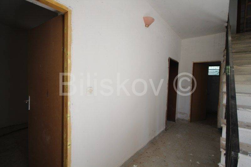 U prizemlju se nalazi kuhinja s trpezarijom, 1 soba i kupaonica, a sa stražnje strane kuće su dvije garaže i ostava u kojoj je bunar.