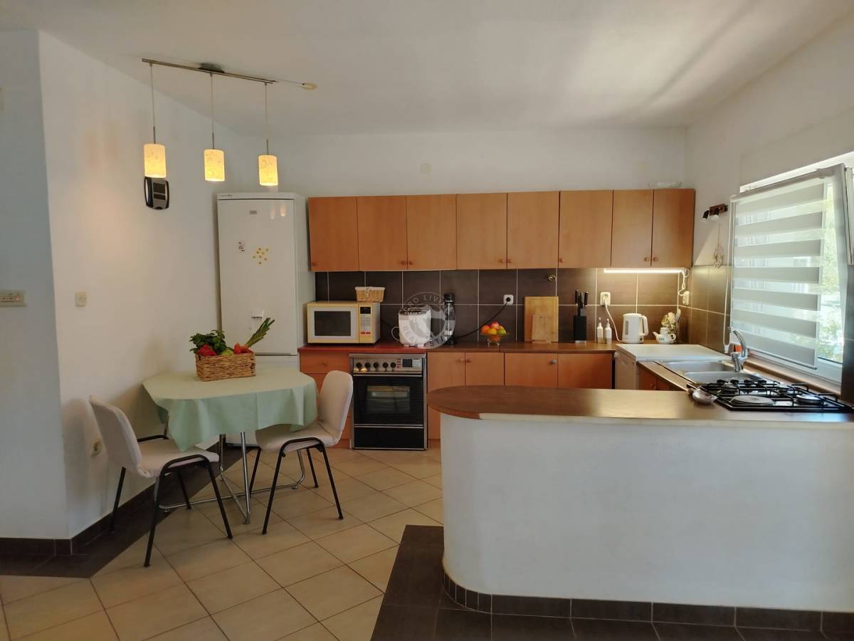 Kuća se nalazi na parceli od 298 m2 i raspolaže s pet spavaćih soba, što je čini idealnim izborom za veće obitelji ili one koji traže dodatni prostor za goste ili rad od kuće. Prostor je osmišljen tako da pruži funkcionalnost, udobnost i obilje prirodne svjetlosti, a posebno se ističe vrlo sunčana pozicija i pogled na more koji doprinosi osjećaju ugode.